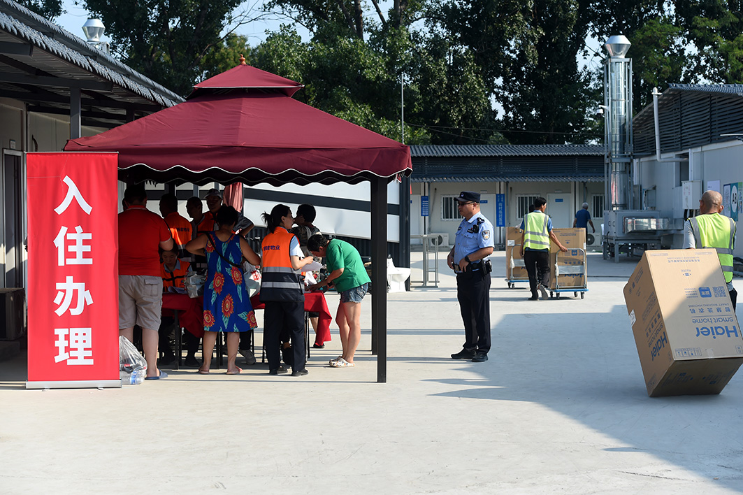 8月13日,房山區(qū)啟用閻村公寓西區(qū)作為集中安置點(diǎn),同時(shí)設(shè)立了由7名民警值守的安置點(diǎn)警務(wù)站。