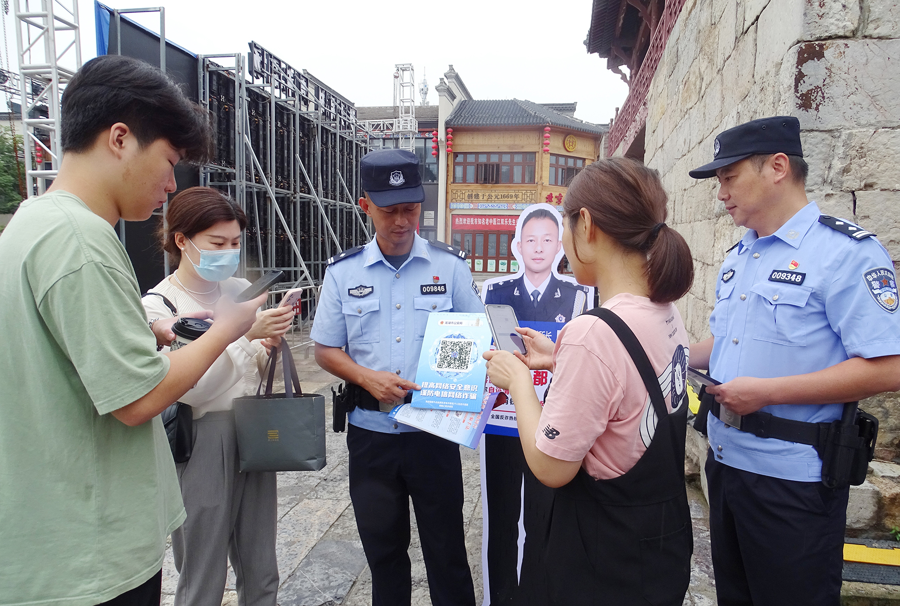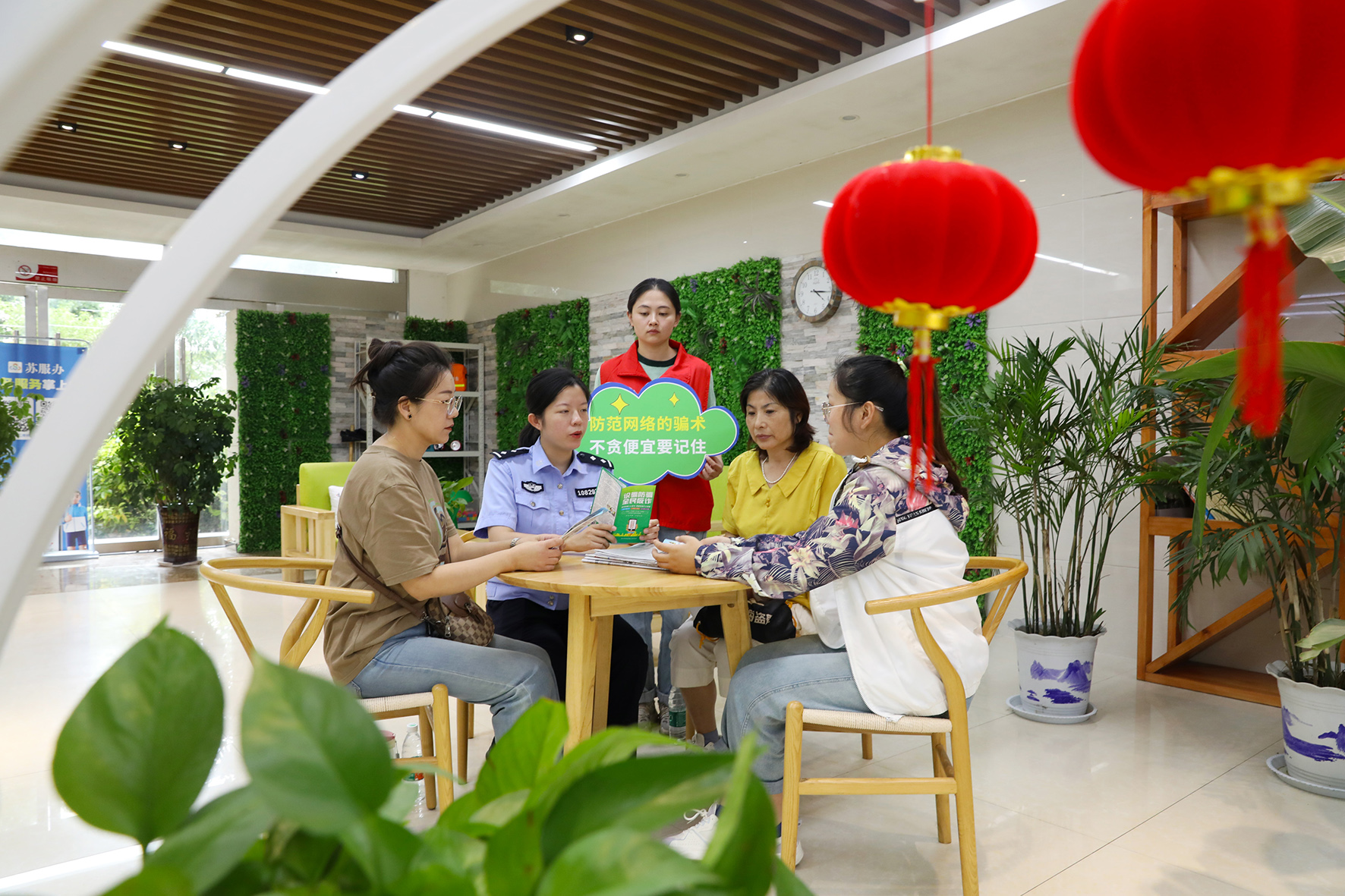 9月14日,江蘇省寶應(yīng)縣公安局沿河派出所民警在蓮花社區(qū)便民服務(wù)站給群眾講解網(wǎng)絡(luò)安全知識和防范電信網(wǎng)絡(luò)詐騙知識。
