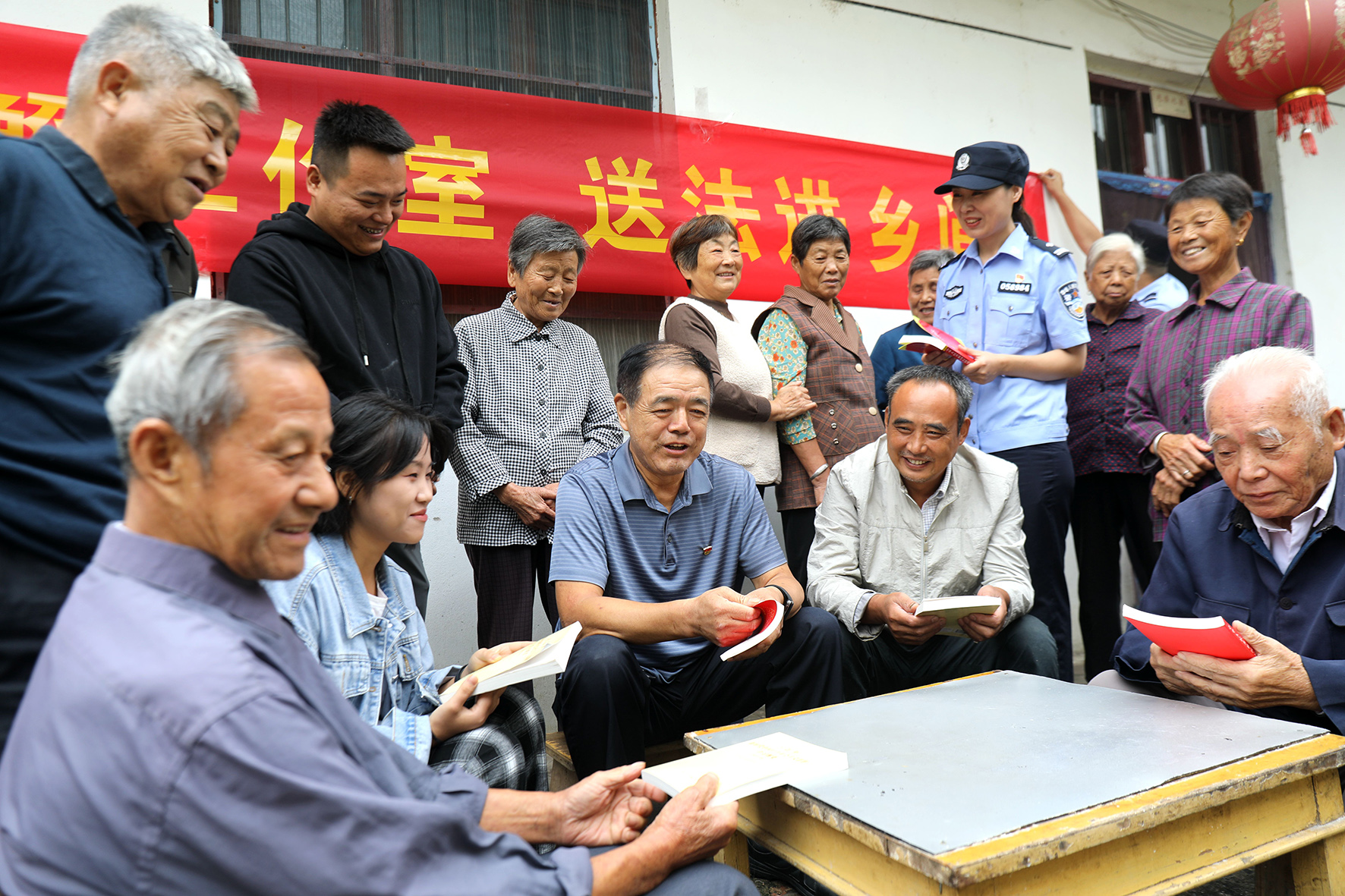 9月22日,安徽省舒城縣公安局杭埠派出所“老吳調(diào)解工作室”吳修富攜同駐村民警來到轄區(qū)河南村,向村民開展法治宣傳。今年66歲的吳修富是一名退休民警,被派出所特聘為調(diào)解工作室調(diào)解員,負責(zé)派出所疑難復(fù)雜矛盾糾紛調(diào)處。“老吳調(diào)解工作室”是全縣首個以個人名義命名的警民聯(lián)調(diào)室,遇事開展調(diào)解空閑時間下鄉(xiāng)普法。