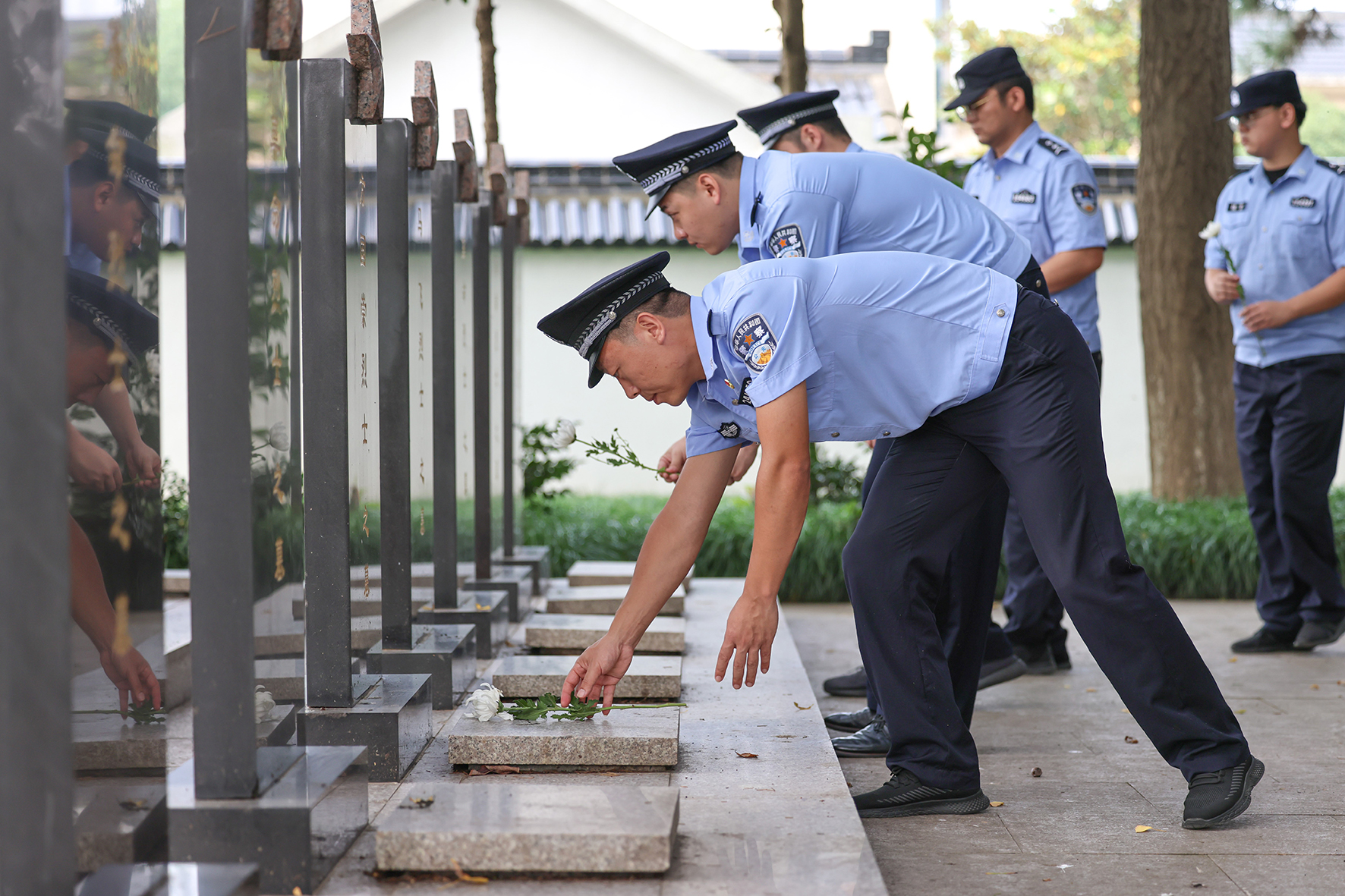 9月27日,安徽省宣城市公安局與寧國市公安局組織青年民警代表前往烈士陵園緬懷英烈。