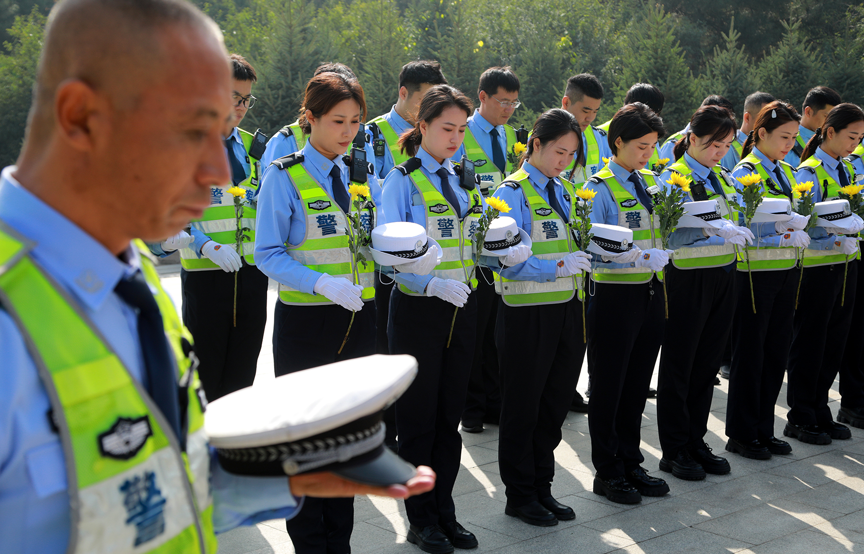 9月27日,遼寧省阜新市公安局交警支隊(duì)海州大隊(duì)民警在三一八公園烈士紀(jì)念碑前舉行紀(jì)念烈士活動(dòng)。