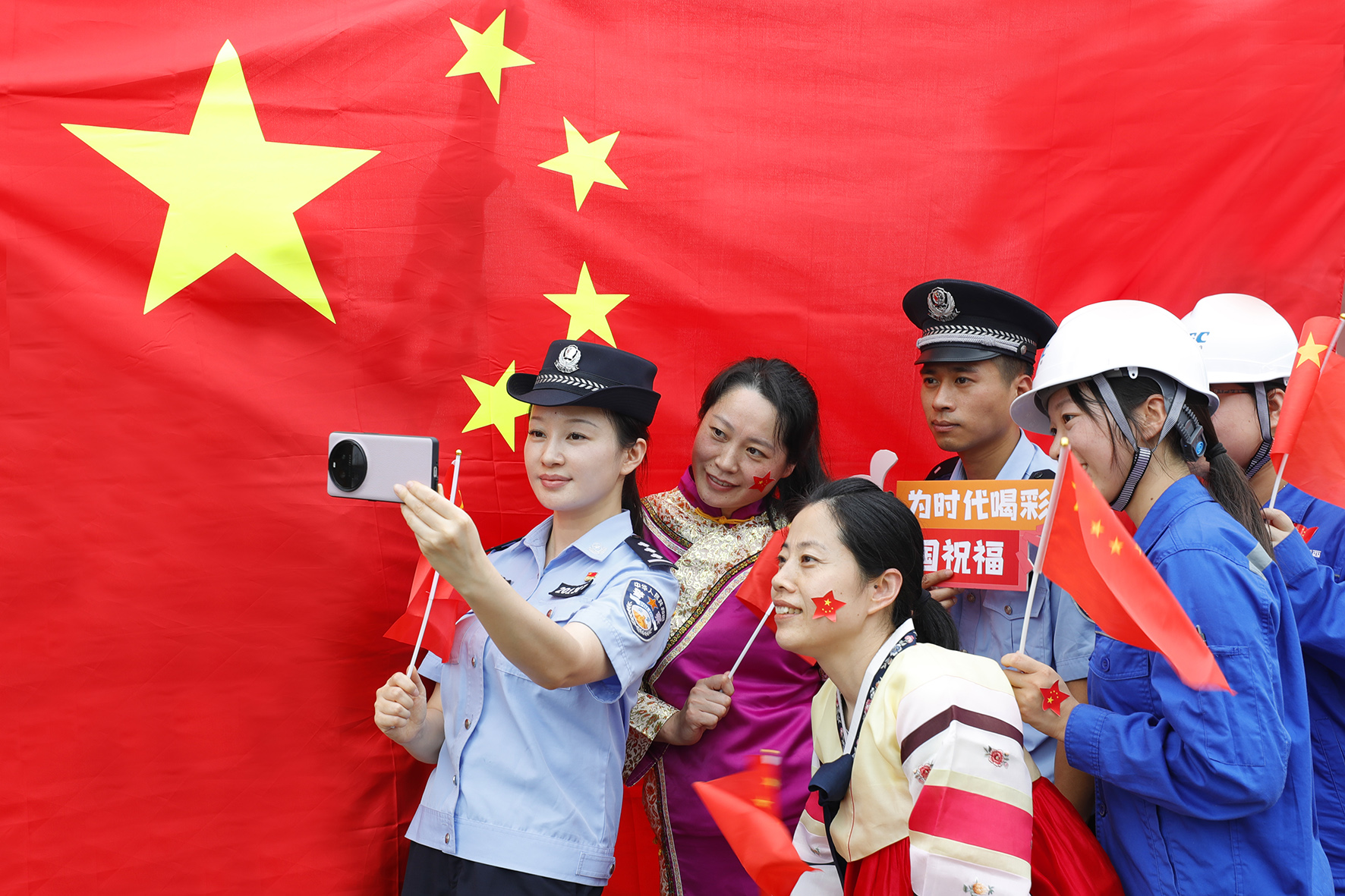 9月27日,江陰出入境邊防檢查站民警與口岸轄區(qū)少數(shù)民族群眾一同喜迎國慶中秋雙節(jié),共同表達對祖國的無限熱愛和美好祝福。