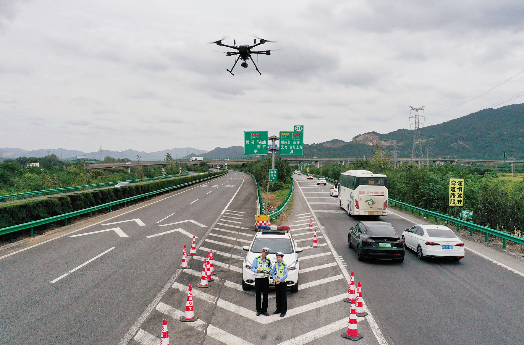 10月6日,安徽省蕪湖市公安局交警支隊(duì)高速二大隊(duì)全體民警輔警24小時(shí)堅(jiān)守崗位,采用人巡+技巡等方法,加強(qiáng)對(duì)高速易堵路段巡查管控。