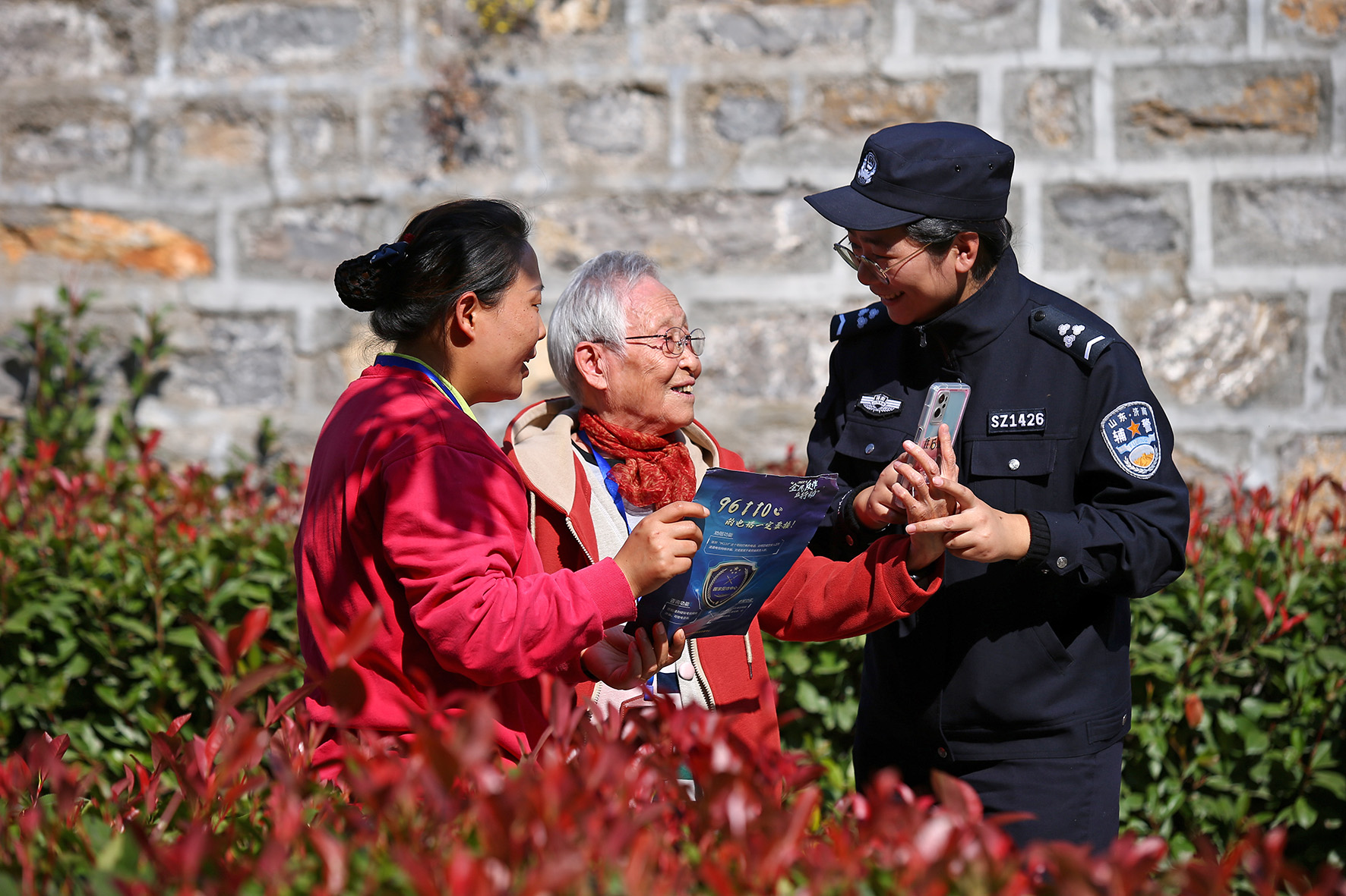 10月22日,山東濟(jì)南養(yǎng)老服務(wù)中心,濟(jì)南市公安局市中區(qū)分局十六里河派出所輔警正在對老人進(jìn)行反電詐宣傳教育。