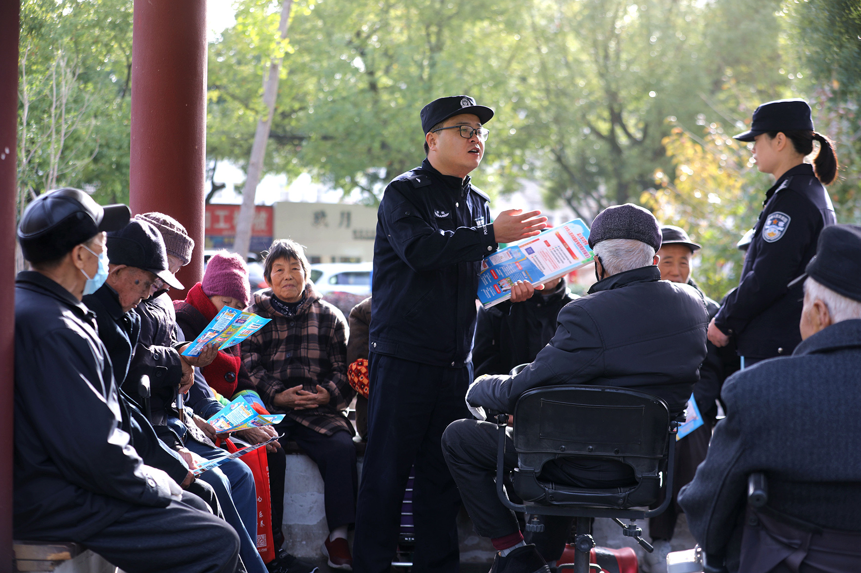 11月16日,安徽省舒城縣公安局城中派出所組織民警走進(jìn)轄區(qū)公園、涼亭等老年人較為集中之處,開(kāi)展以“生命至上‘六個(gè)一’”為主題的平安防范宣傳。
