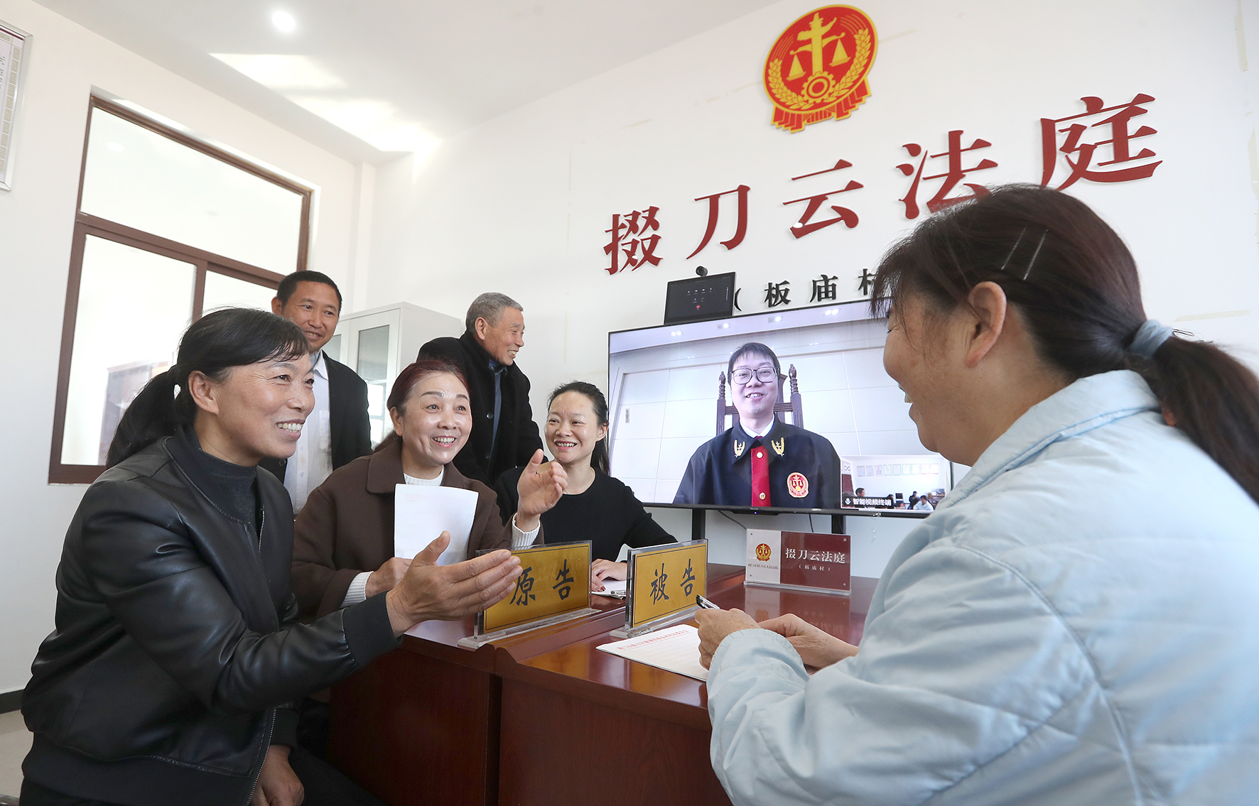 11月21日,湖北省荊門市掇刀區(qū)人民法院利用設(shè)立在麻城鎮(zhèn)板廟村的“掇刀云法庭”,僅用1個小時化解了一起耕地糾紛,雙方當事人滿心歡喜。