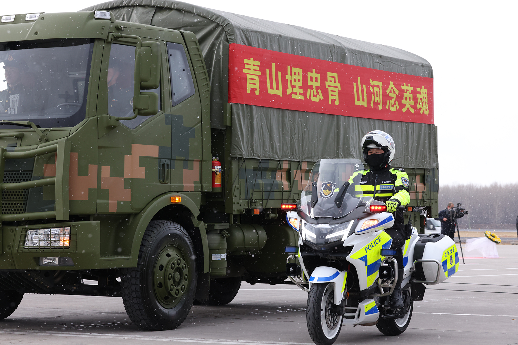 11月23日,第十批在韓中國(guó)人民志愿軍烈士遺骸回國(guó)。遼寧省沈陽(yáng)市公安局交通警察局精心組織,嚴(yán)格選拔出由45車(chē)組成的摩托車(chē)護(hù)衛(wèi)車(chē)隊(duì),擔(dān)負(fù)護(hù)衛(wèi)任務(wù),迎接烈士回家。