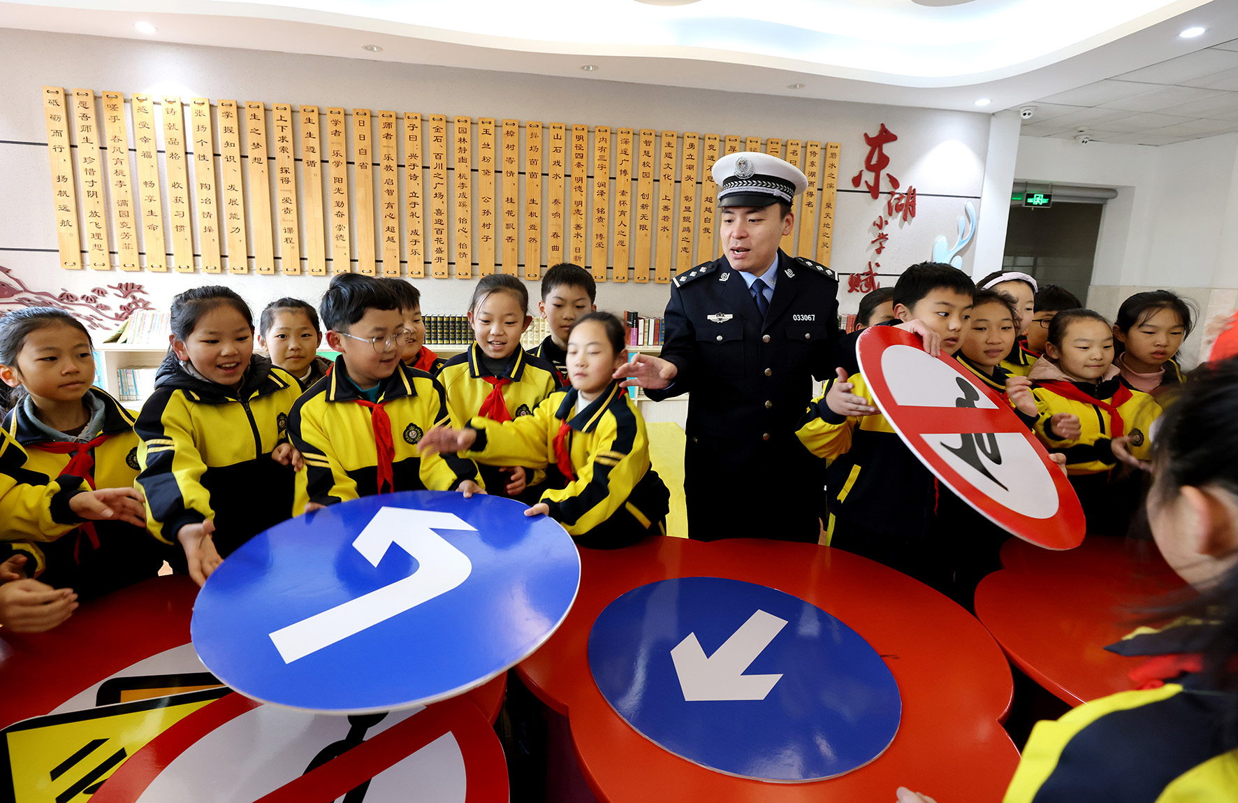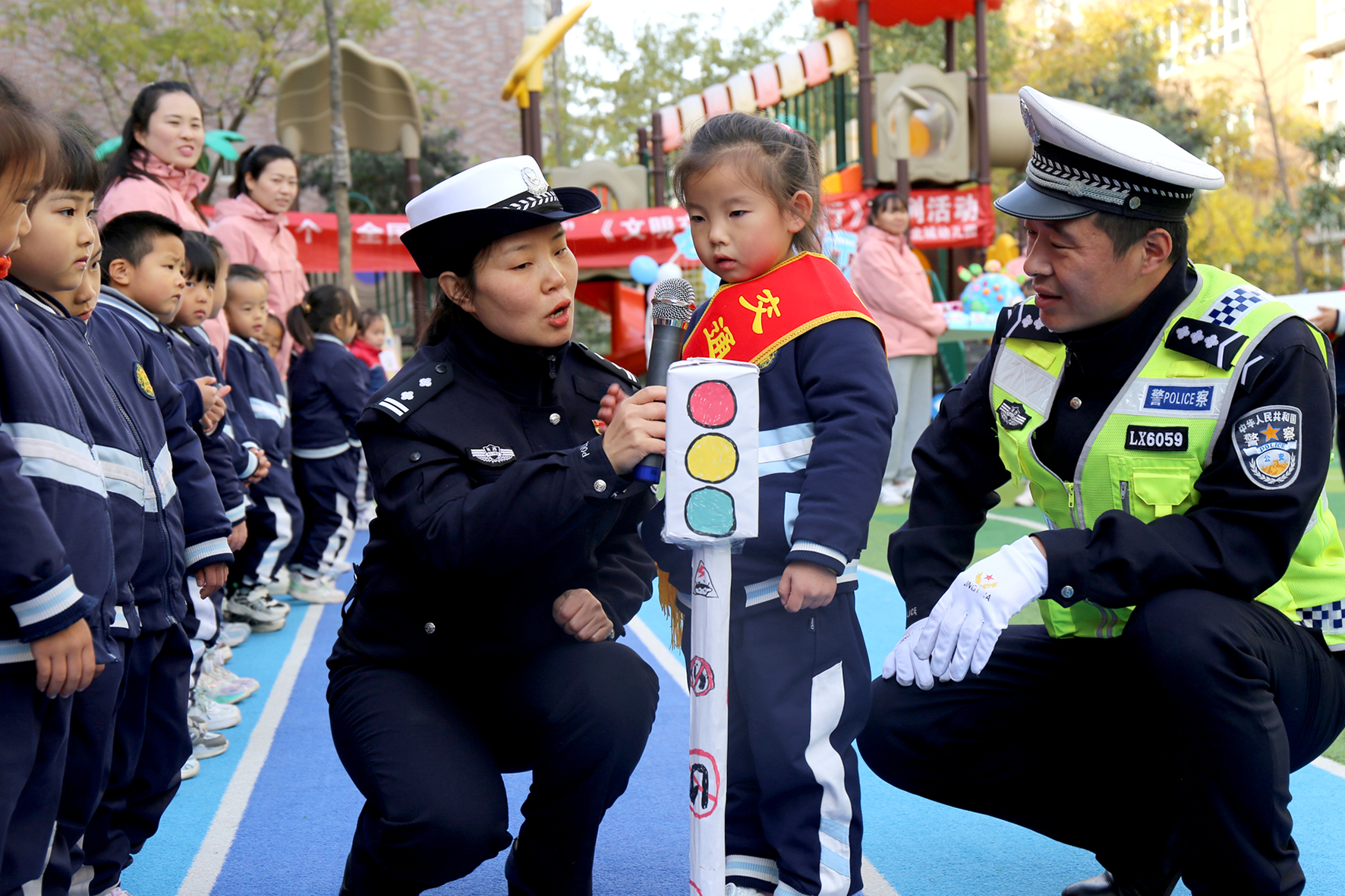 11月30日,山東省棗莊市公安局市中分局交通警察大隊(duì)民警與東湖小學(xué)學(xué)生一起做交通安全趣味游戲。