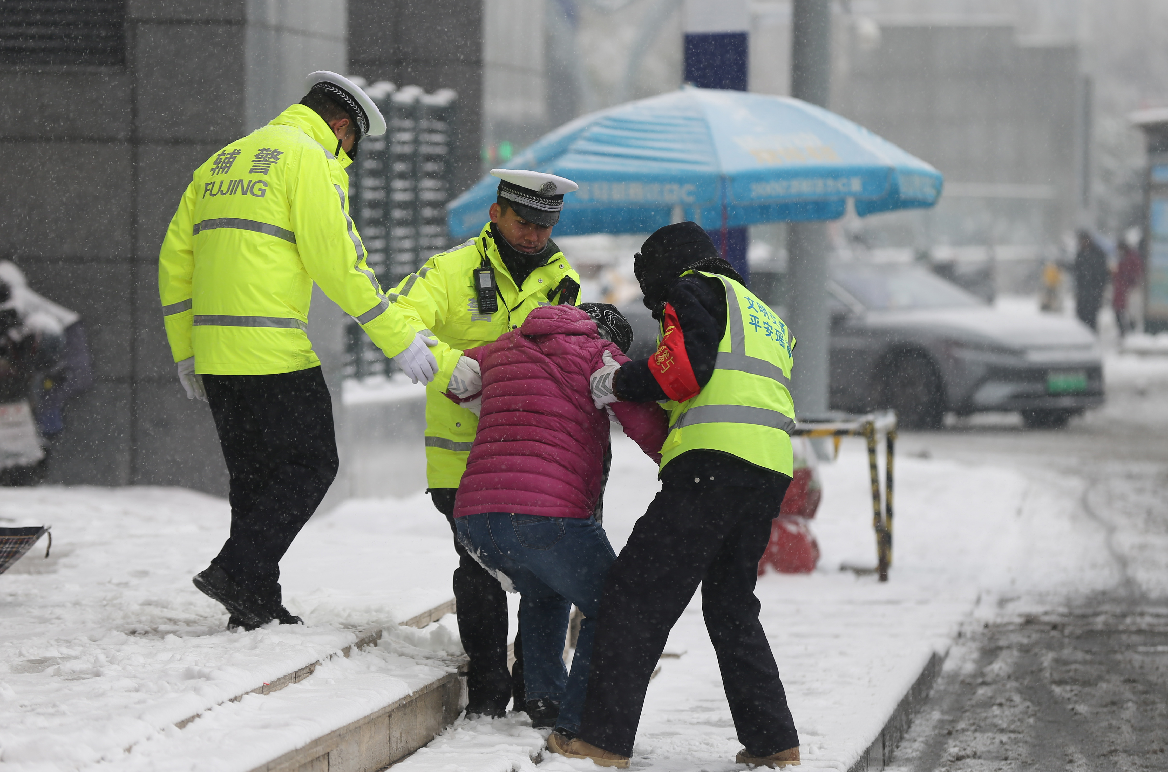 12月18日,安徽省含山縣境內(nèi)普降大雪。含山縣公安局全警動(dòng)員強(qiáng)化惡劣天氣下的道路管控、巡查、疏導(dǎo)等措施,確保道路安全暢通和群眾出行安全。