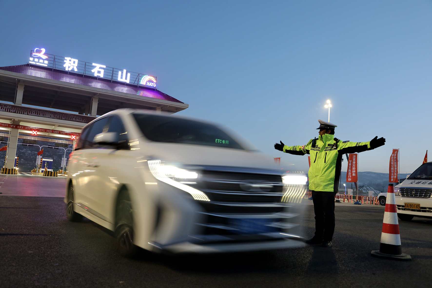 12月26日晚,甘肅省東鄉(xiāng)縣公安局民輔警在積石山臨大高速路口頂著寒風(fēng)全力疏通保暢,堅守在抗震救災(zāi)第一線。