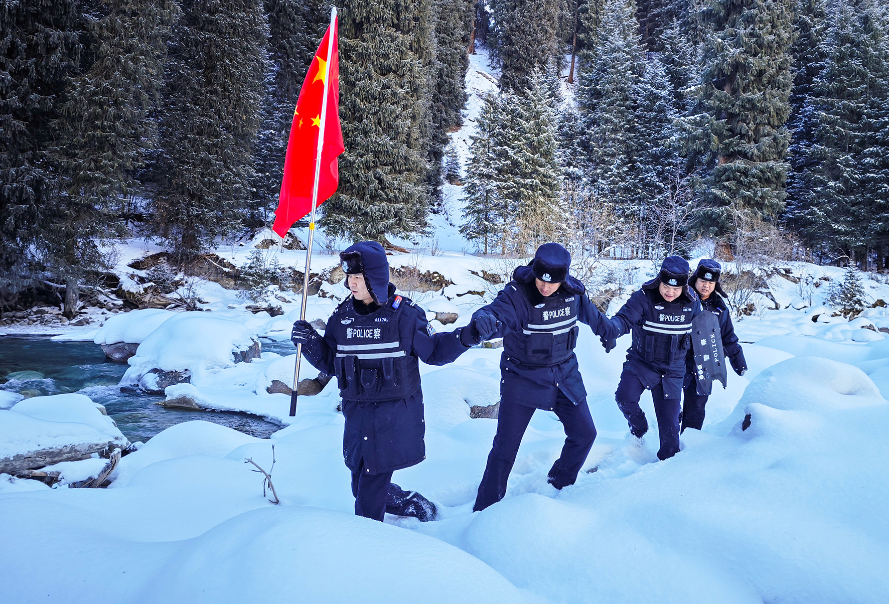 2023年12月29日,新疆出入境邊防檢查總站阿勒泰邊境管理支隊(duì)富蘊(yùn)邊境管理大隊(duì)庫衛(wèi)邊境派出所的民輔警對邊境重點(diǎn)區(qū)域進(jìn)行踏查。