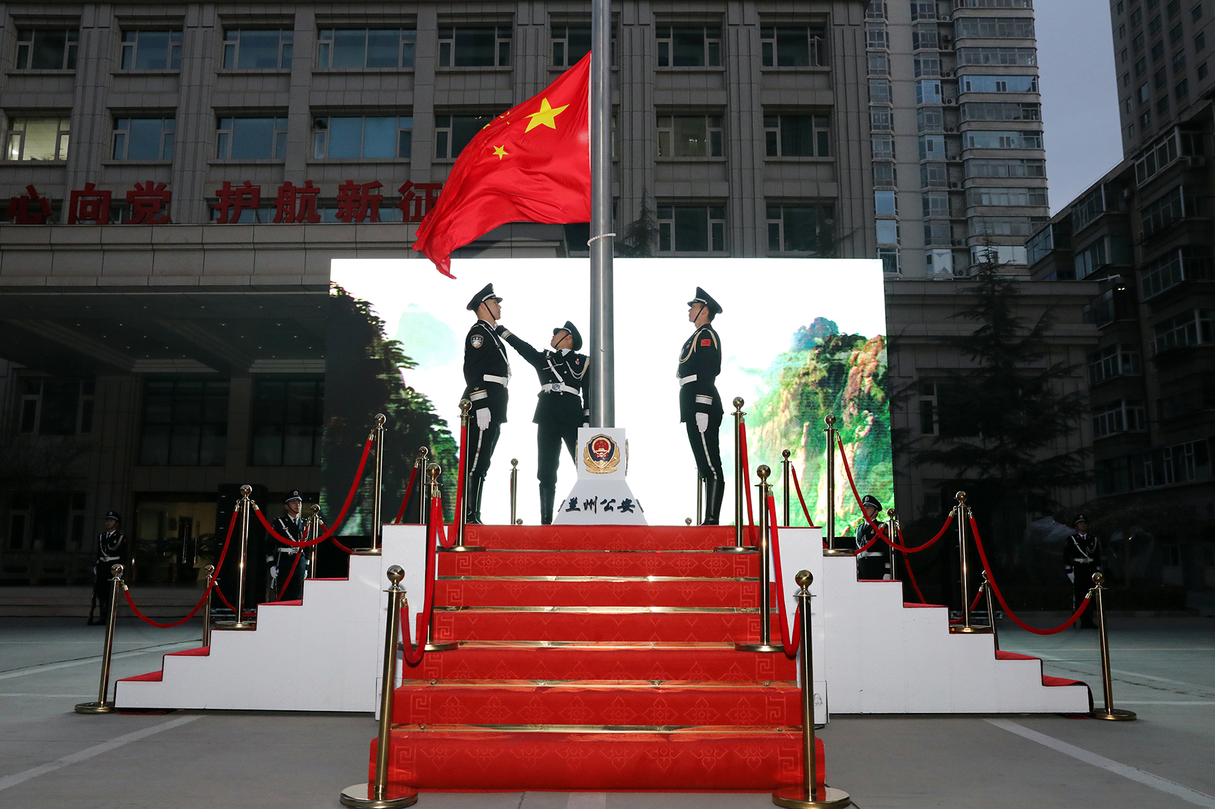 1月1日,甘肅省蘭州市公安局隆重舉行新年升國旗儀式。同時,還進(jìn)行了新警授銜整裝儀式,為6名新警代表頒發(fā)授銜證書。