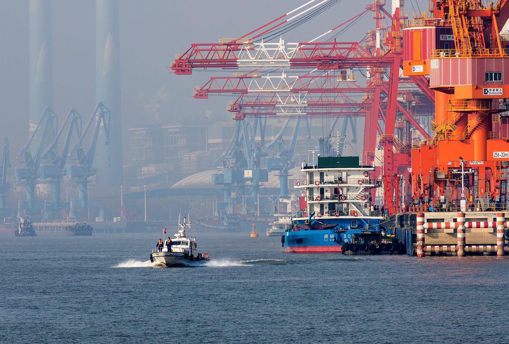 1月1日,寧波出入境邊防檢查站綜合執(zhí)勤七隊(duì)民警在大榭港區(qū)集裝箱碼頭開展巡邏檢查。