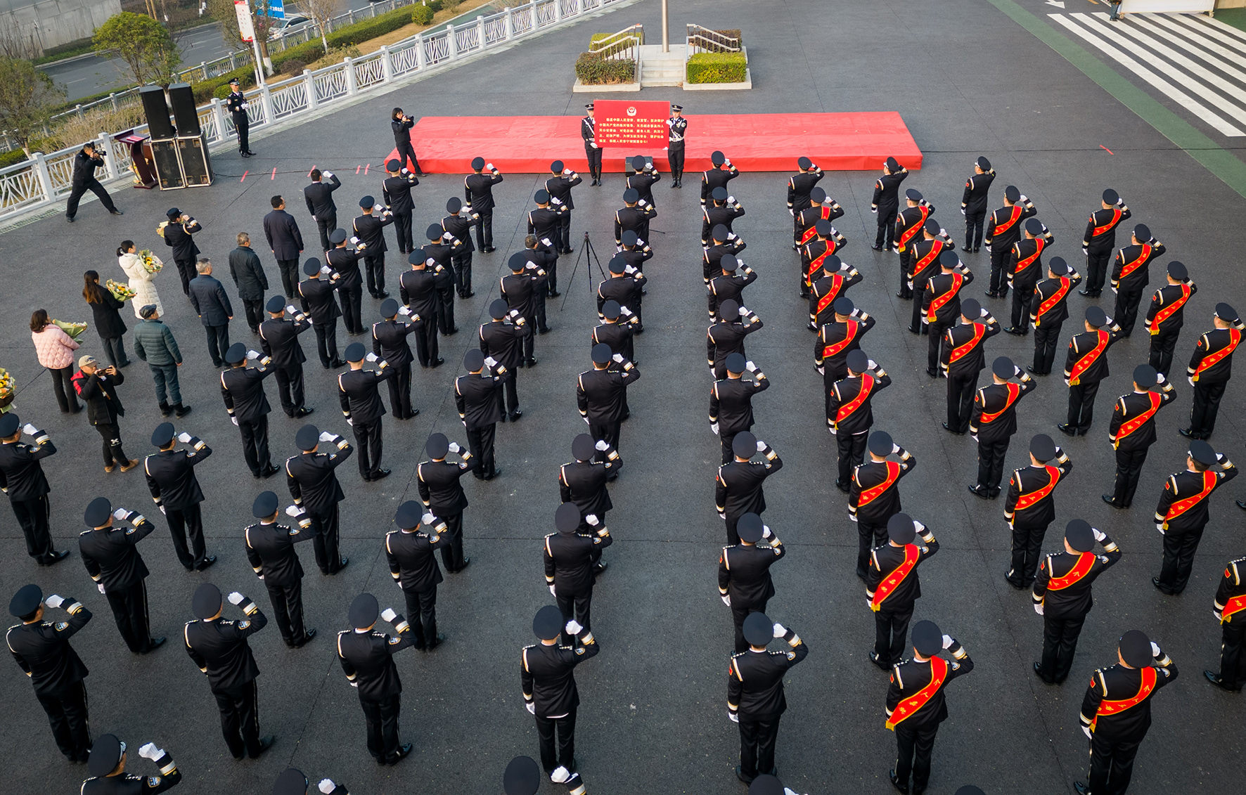 1月10日,陜西省潼關(guān)縣公安局舉行莊嚴(yán)的升警旗儀式,重溫入警誓詞。