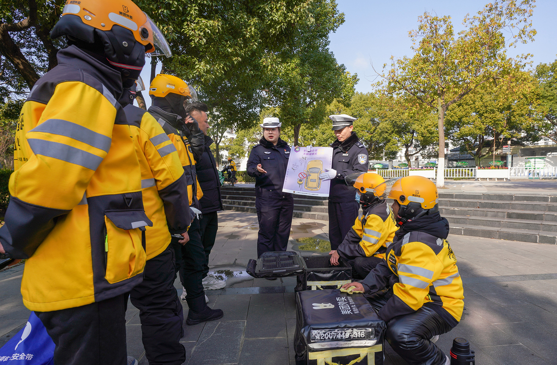 1月16日,上海市公安局崇明分局交警支隊(duì)民警來到轄區(qū)外賣員聚集地,開展了一場(chǎng)針對(duì)外賣騎手的交通安全宣講活動(dòng)。