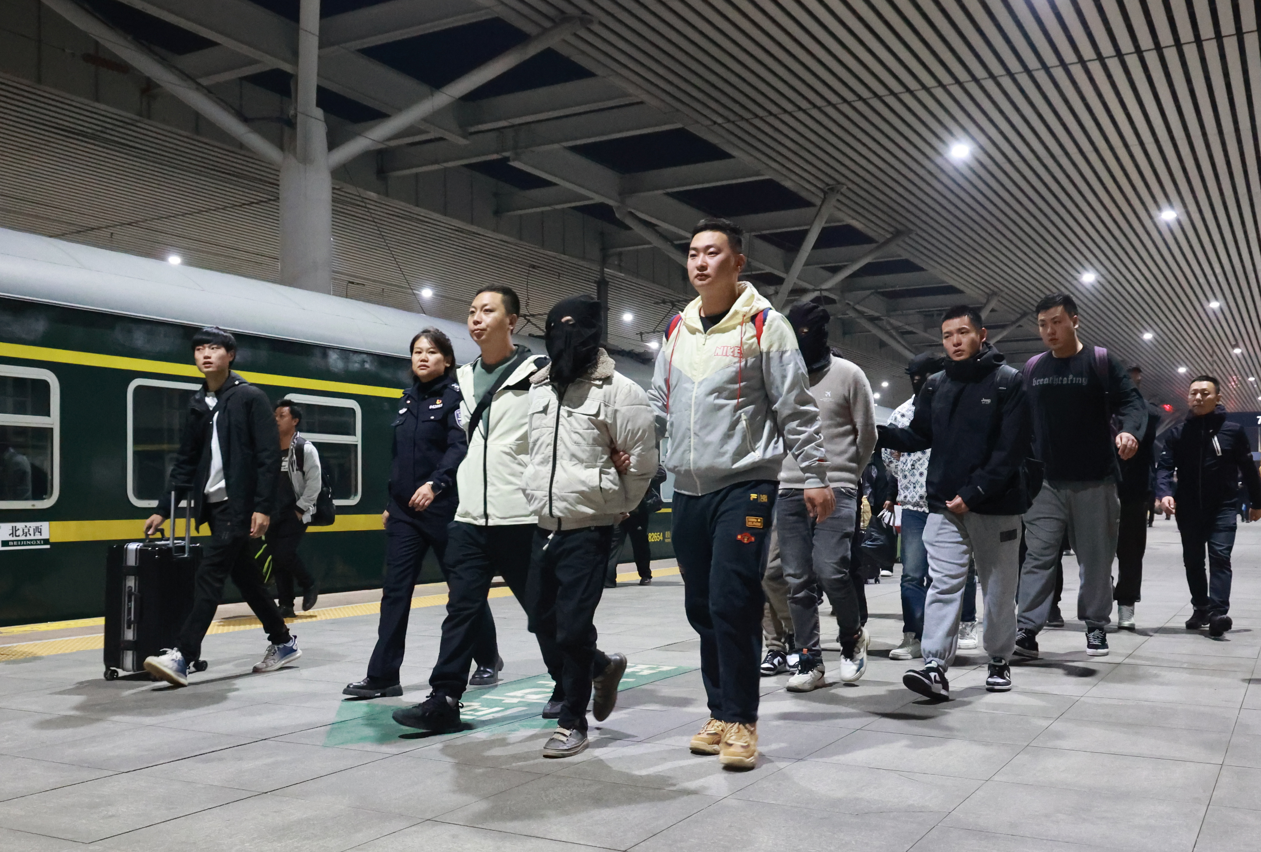 圖為專案組偵查員將抓獲的嫌疑人押回包頭。