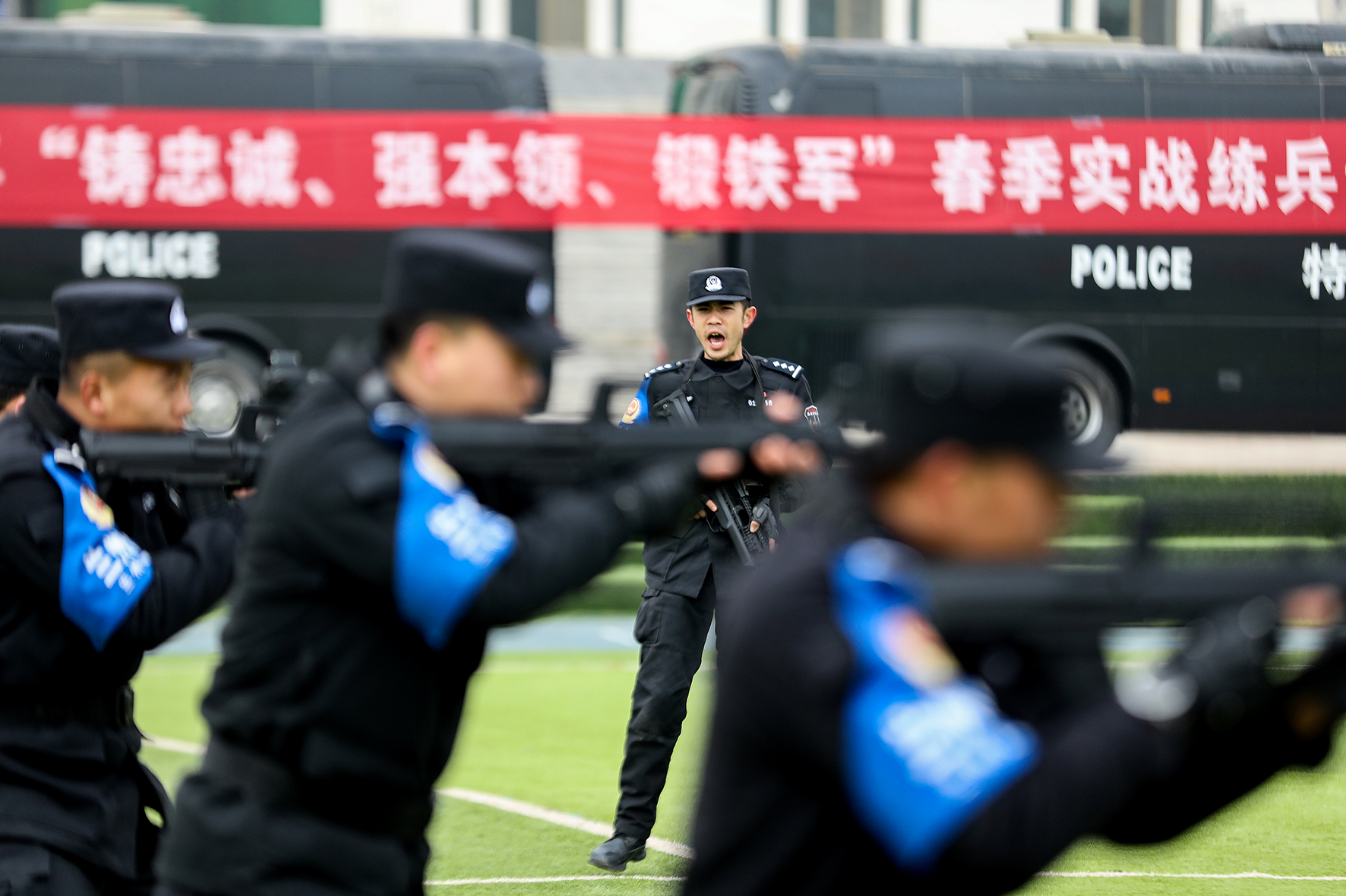 2月27日,甘肅蘭州市公安局特警隊(duì)伍開展春季實(shí)戰(zhàn)訓(xùn)練,百名特戰(zhàn)隊(duì)員在訓(xùn)練場(chǎng)上開展持槍戰(zhàn)術(shù)動(dòng)作、突擊攻堅(jiān)戰(zhàn)術(shù)、盾棍叉小組戰(zhàn)術(shù)、無人機(jī)操作、體能對(duì)抗等多項(xiàng)警事技能訓(xùn)練,拉開2024春季大練兵序幕。