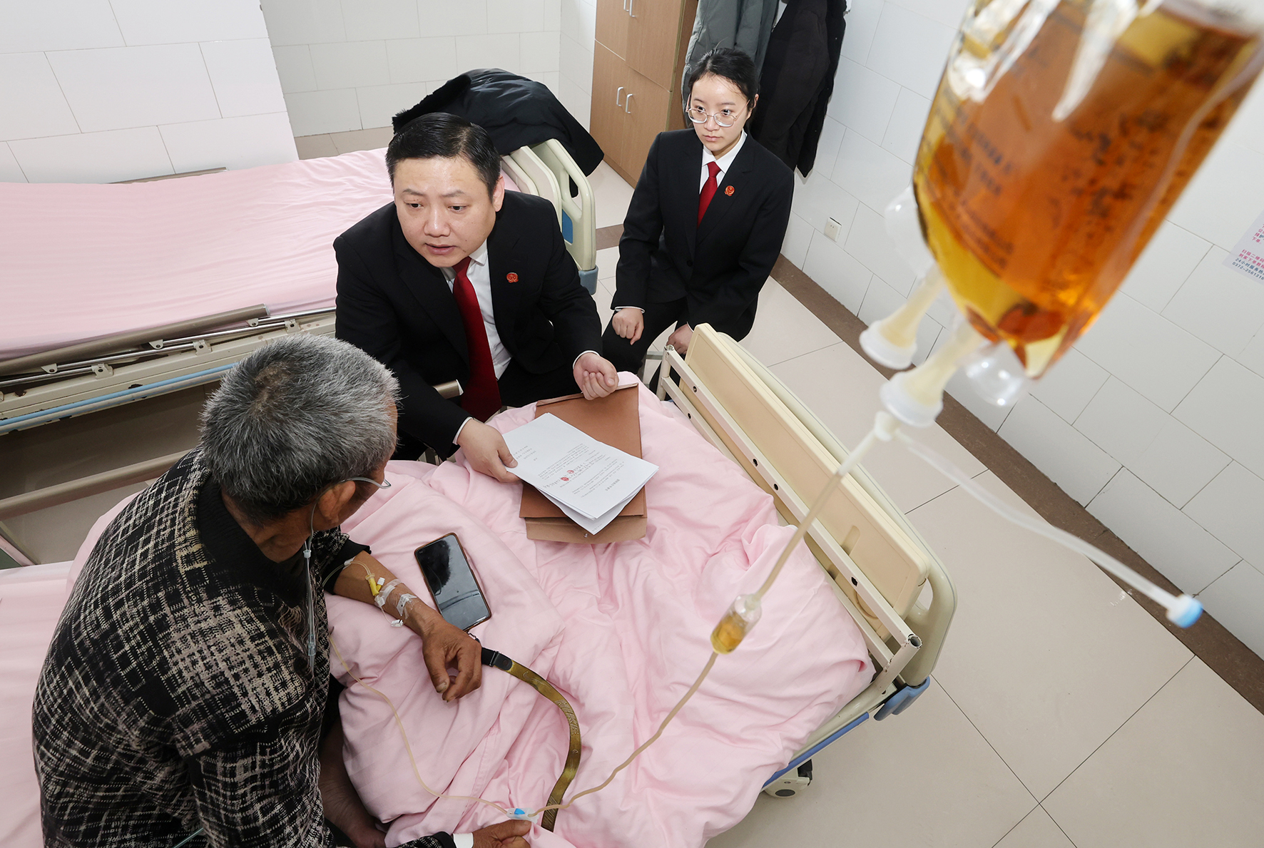 2月28日,河南省安陽(yáng)縣人民法院組織立案庭干警走進(jìn)醫(yī)院病房?jī)?nèi),為年近七旬的李老漢辦理了執(zhí)行立案手續(xù)。