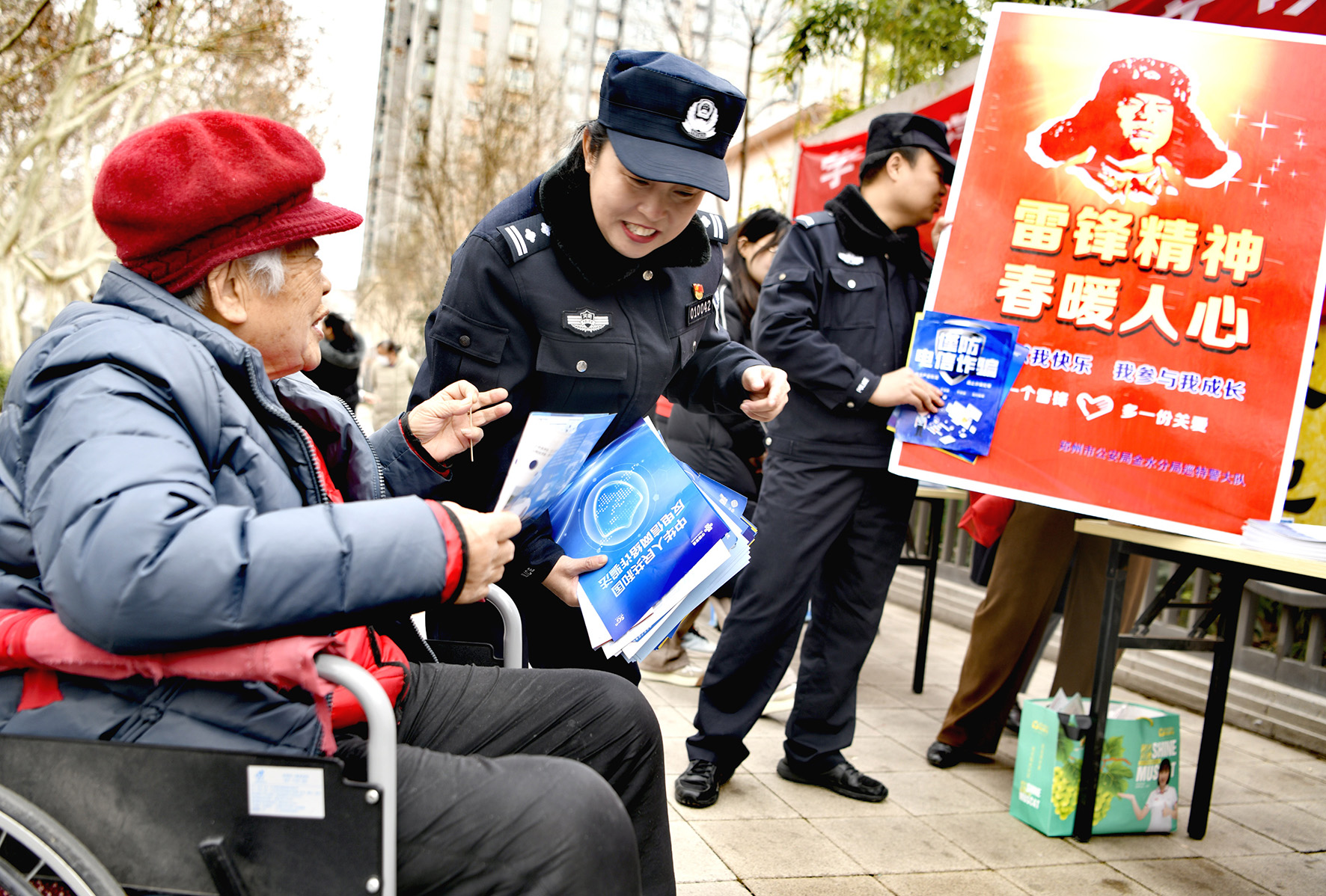 3月5日,河南省鄭州市公安局金水分局巡特警隊(duì)員來(lái)到轄區(qū)開展“學(xué)雷鋒春暖人心”服務(wù)活動(dòng)。