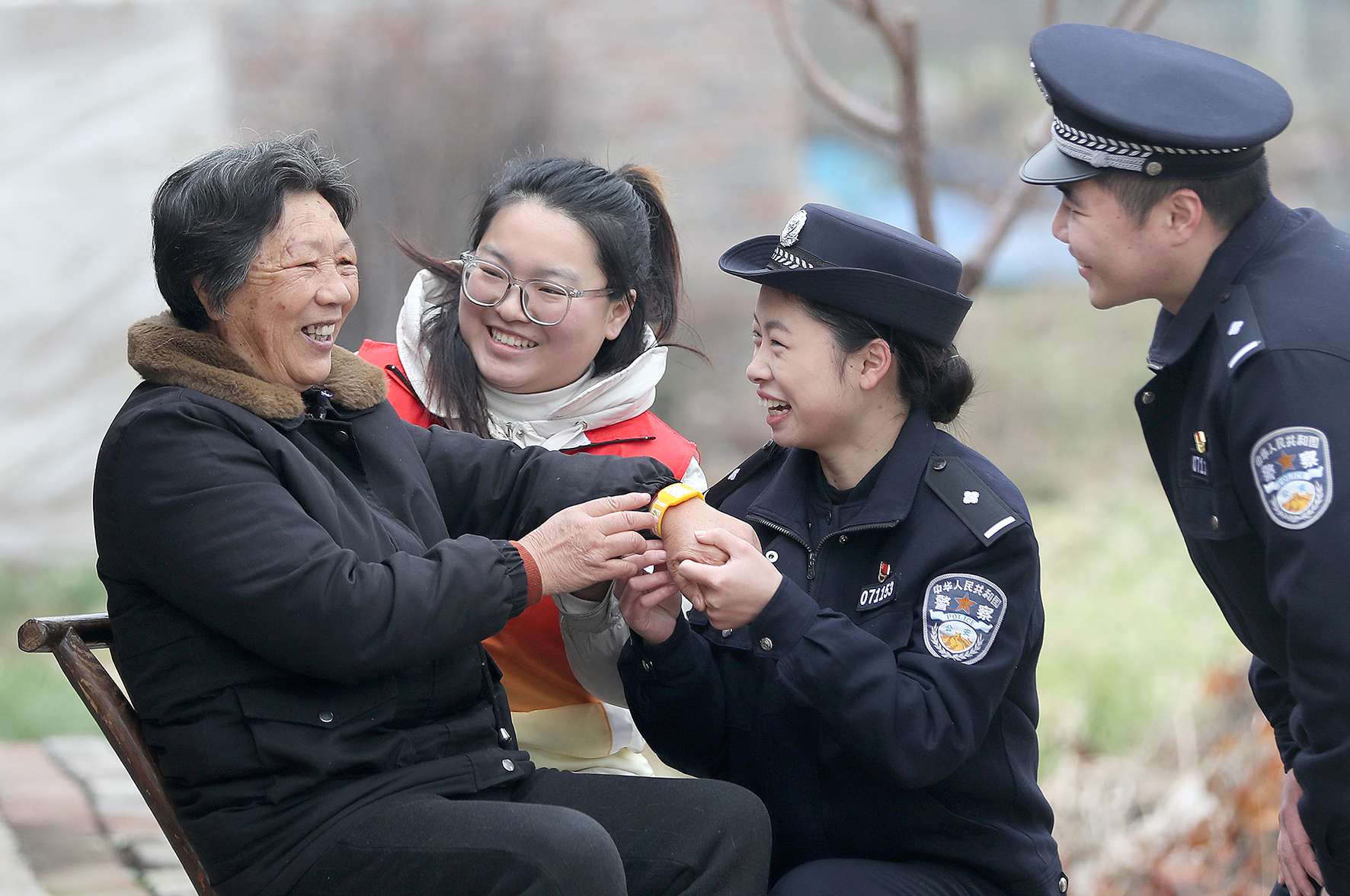3月5日是第61個(gè)全國(guó)學(xué)雷鋒紀(jì)念日,湖北省荊門市公安局漳河新區(qū)分局雙喜派出所民警聯(lián)合義工,在楊店村為老人免費(fèi)發(fā)放預(yù)防走失的“黃手環(huán)”。