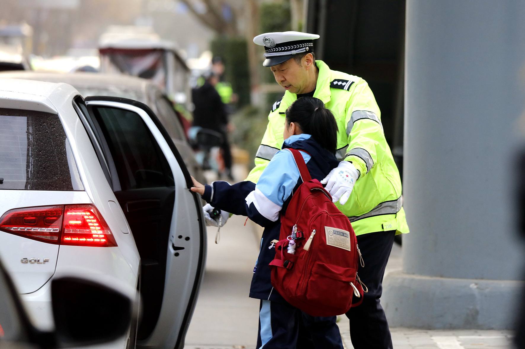 3月6日,是陜西省渭南市公安局交警支隊臨渭大隊60歲老民警李太平退休前的最后一班護(hù)學(xué)崗。從警23年的他曾經(jīng)是一名軍人,轉(zhuǎn)業(yè)到臨渭交警大隊后,從事交通管理工作最多的就是與學(xué)校的孩子們打交道,每周他都會走上課堂給孩子們宣傳交通安全知識,每天早上7點會準(zhǔn)時站到學(xué)校門前,護(hù)送學(xué)生安全上學(xué)。