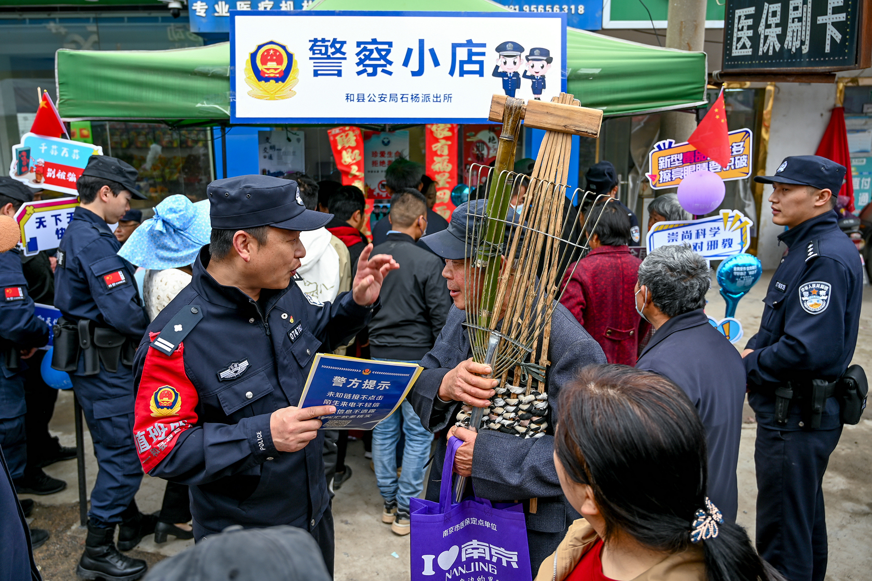 4月11日,農(nóng)歷三月初三,是安徽省馬鞍山市和縣石楊鎮(zhèn)綽廟社區(qū)一年一度群眾“趕廟會”的日子。和縣公安局在全力做好廟會安全服務(wù)保障的同時,“警察小店”也“開張營業(yè)”,禁毒、反詐、反邪教以及國家安全等各種法治宣傳吸引了許多趕廟會的群眾。