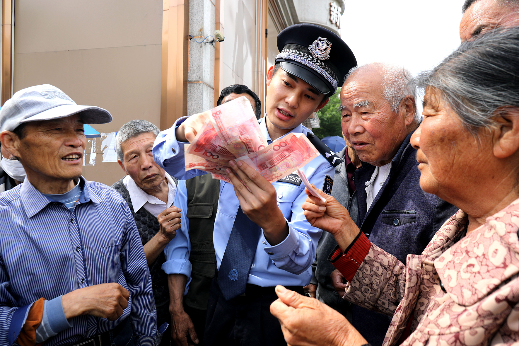 5月9日,安徽省舒城縣公安局經(jīng)偵大隊聯(lián)合城中派出所深入轄區(qū)飛霞公園,向老年人群體開展反假幣宣傳。“5·15”經(jīng)偵日即將來臨,民輔警通過發(fā)放宣傳資料、面對面講解等方式,現(xiàn)場教授老年群眾“一看、二摸、三聽”的假幣識別技巧,以提高群眾假幣識別能力和防范意識,全面防范和打擊假幣違法犯罪行為。