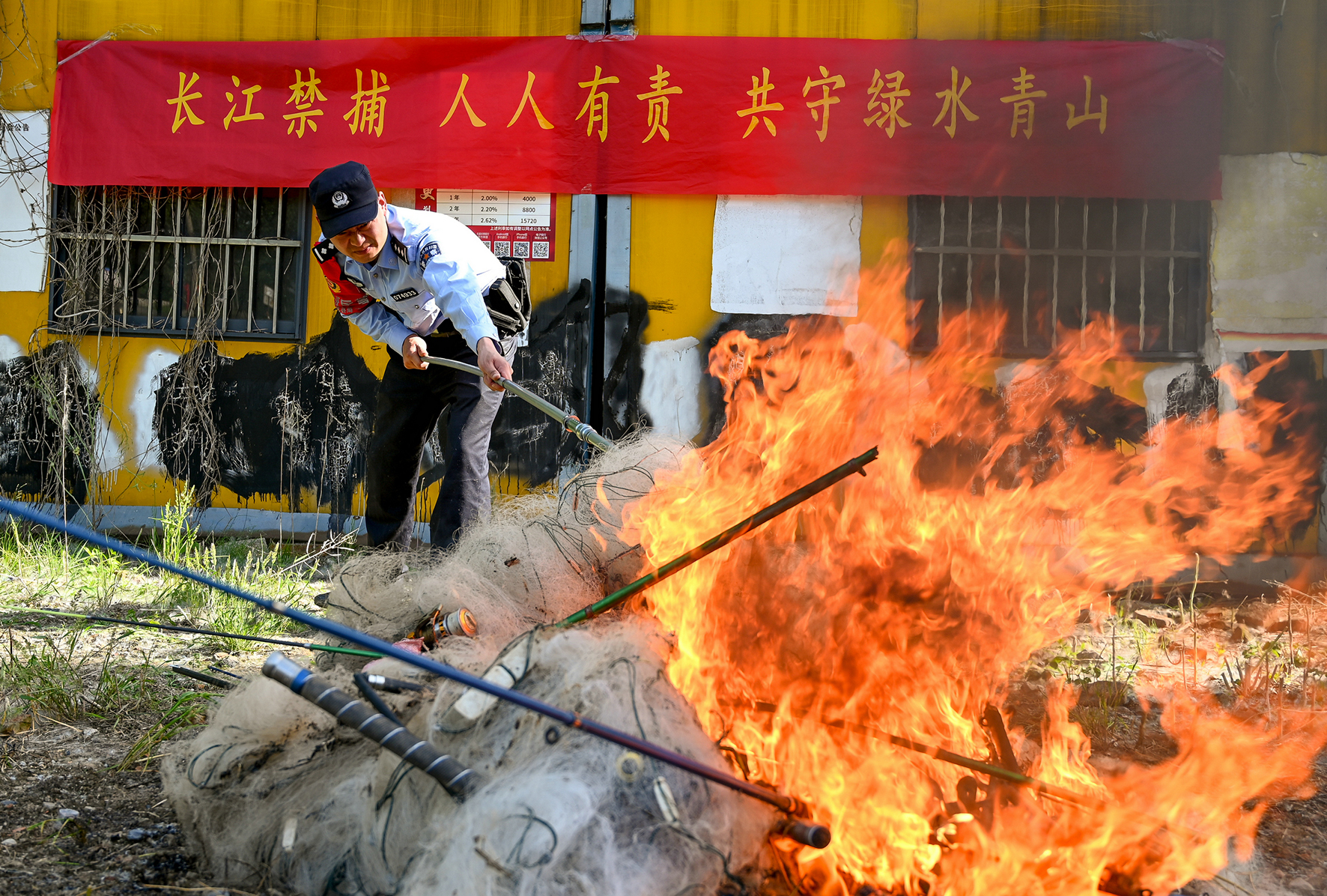 5月13日,安徽省馬鞍山市和縣公安局聯(lián)手漁業(yè)部門對(duì)依法收繳的“非法捕撈”漁具進(jìn)行集中銷毀。為鞏固長(zhǎng)江流域“十年禁漁”決策部署,和縣公安局聯(lián)手相關(guān)職能部門,嚴(yán)查非法捕撈、違規(guī)垂釣等行為,全力推動(dòng)長(zhǎng)江“十年禁漁”政策有力有效,行穩(wěn)致遠(yuǎn)。