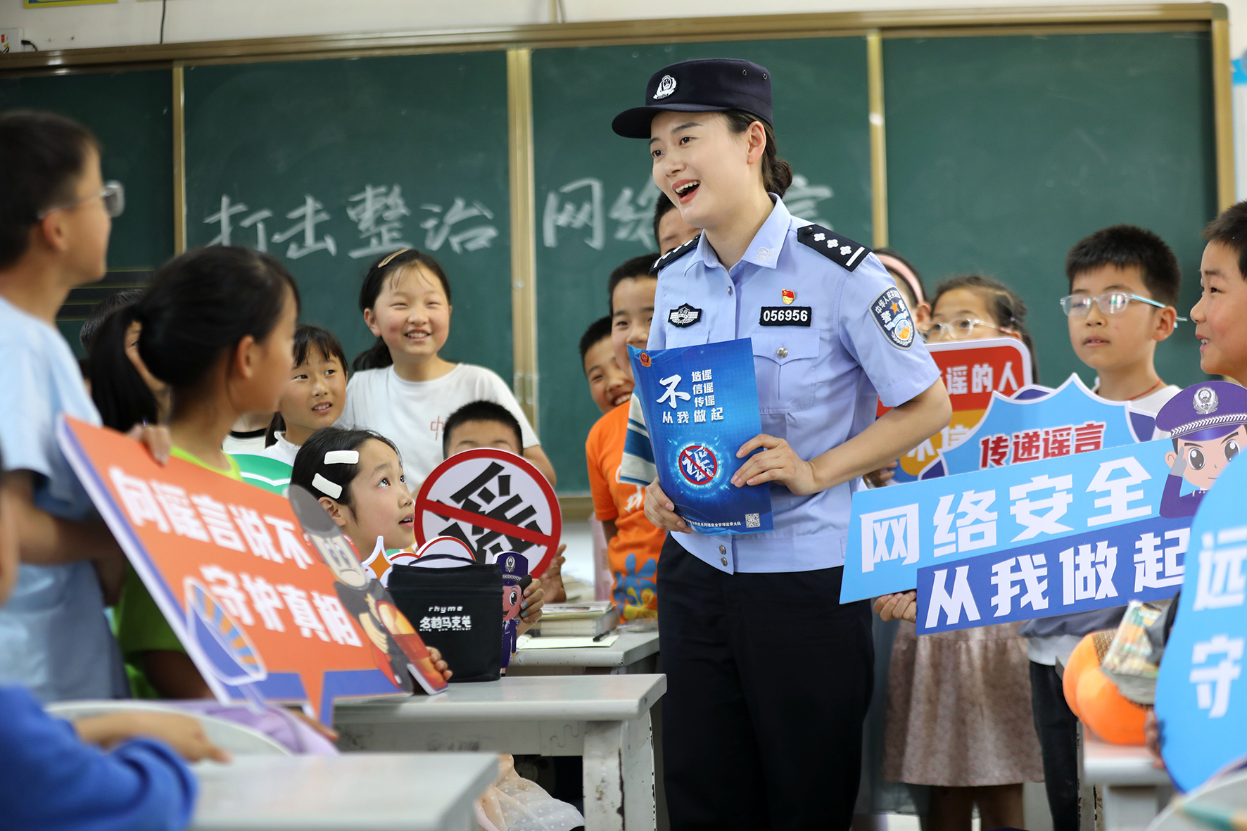 5月17日,安徽省舒城縣公安局網(wǎng)監(jiān)大隊(duì)聯(lián)合柏林派出所來到柏林鄉(xiāng)中心小學(xué)開展整治網(wǎng)絡(luò)謠言宣傳活動。