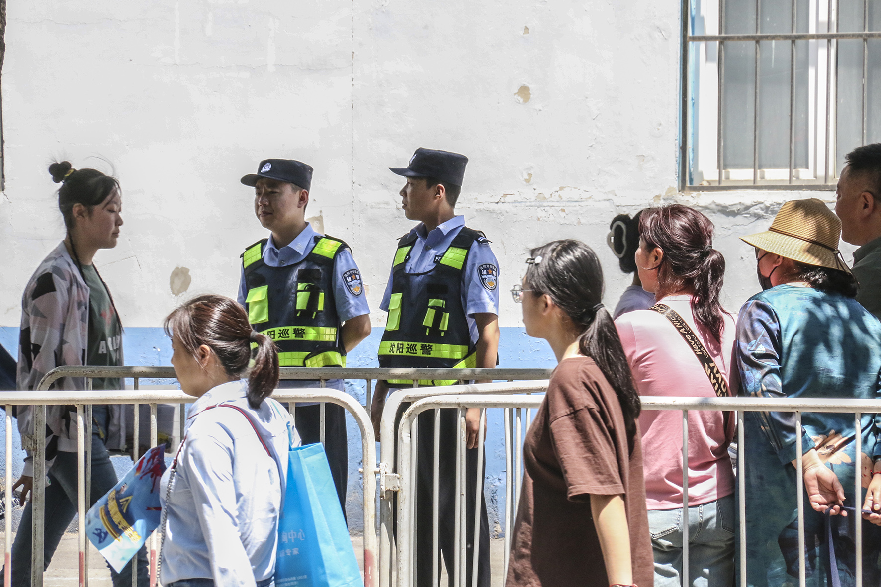 6月9日,遼寧省沈陽市公安局民警輔警在沈陽市回民中學(xué)考點外執(zhí)勤。