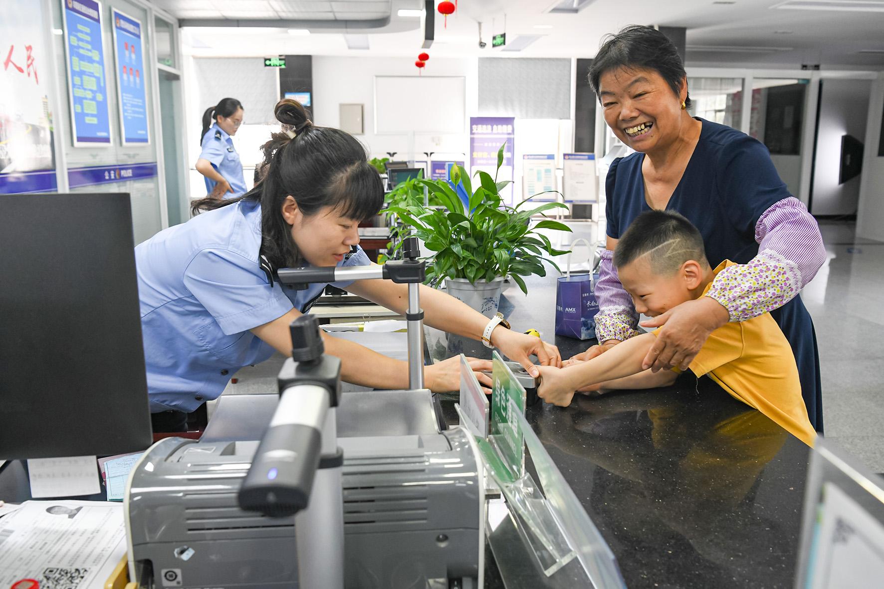 圖為民警正在為群眾辦理證件。