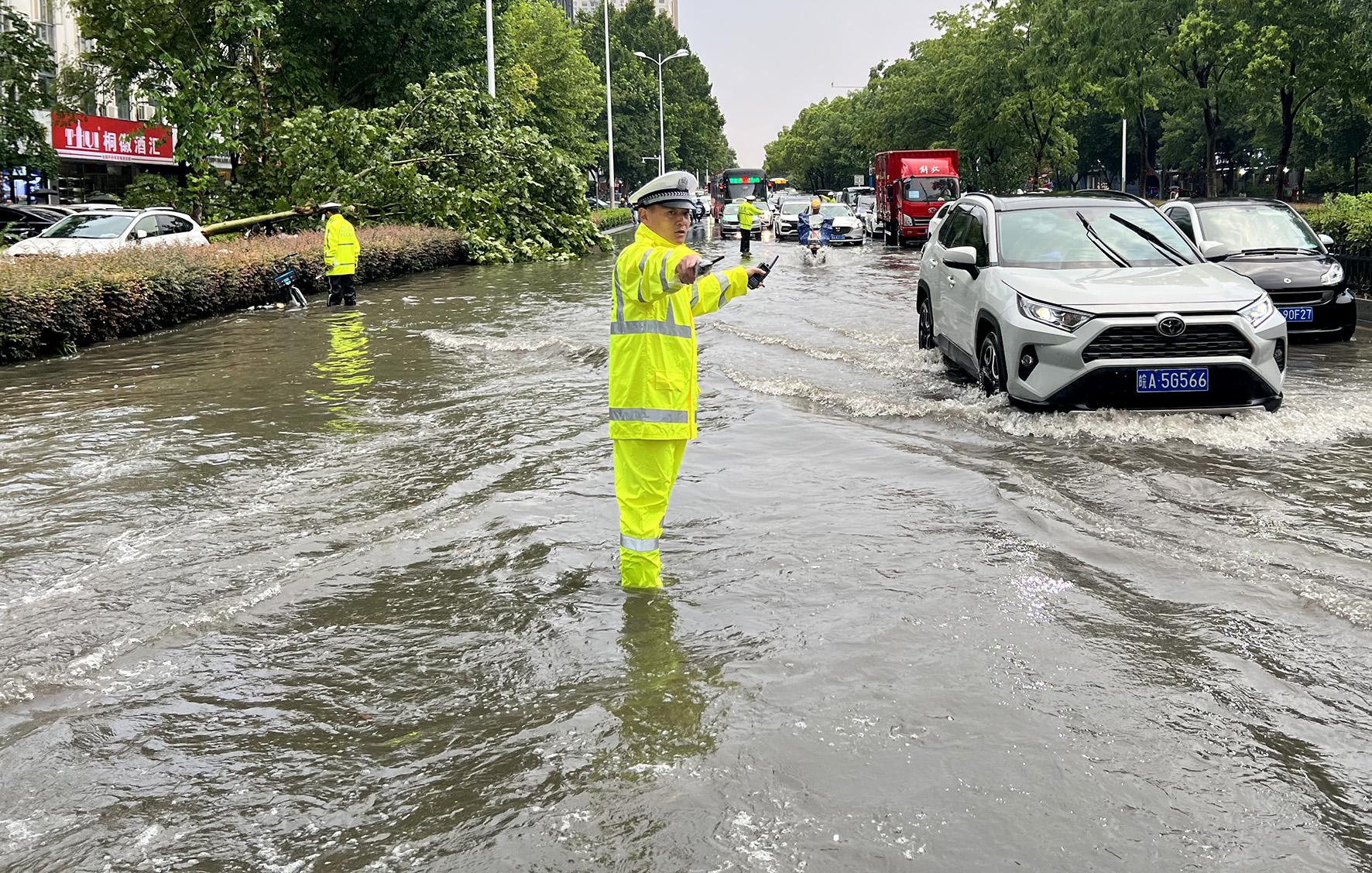 8月7日,安徽省合肥市部分城區(qū)突遇短時暴雨和雷電大風強對流天氣。公安交警部門積極采取措施應對,強化重點路段管控力度,保障群眾安全出行。