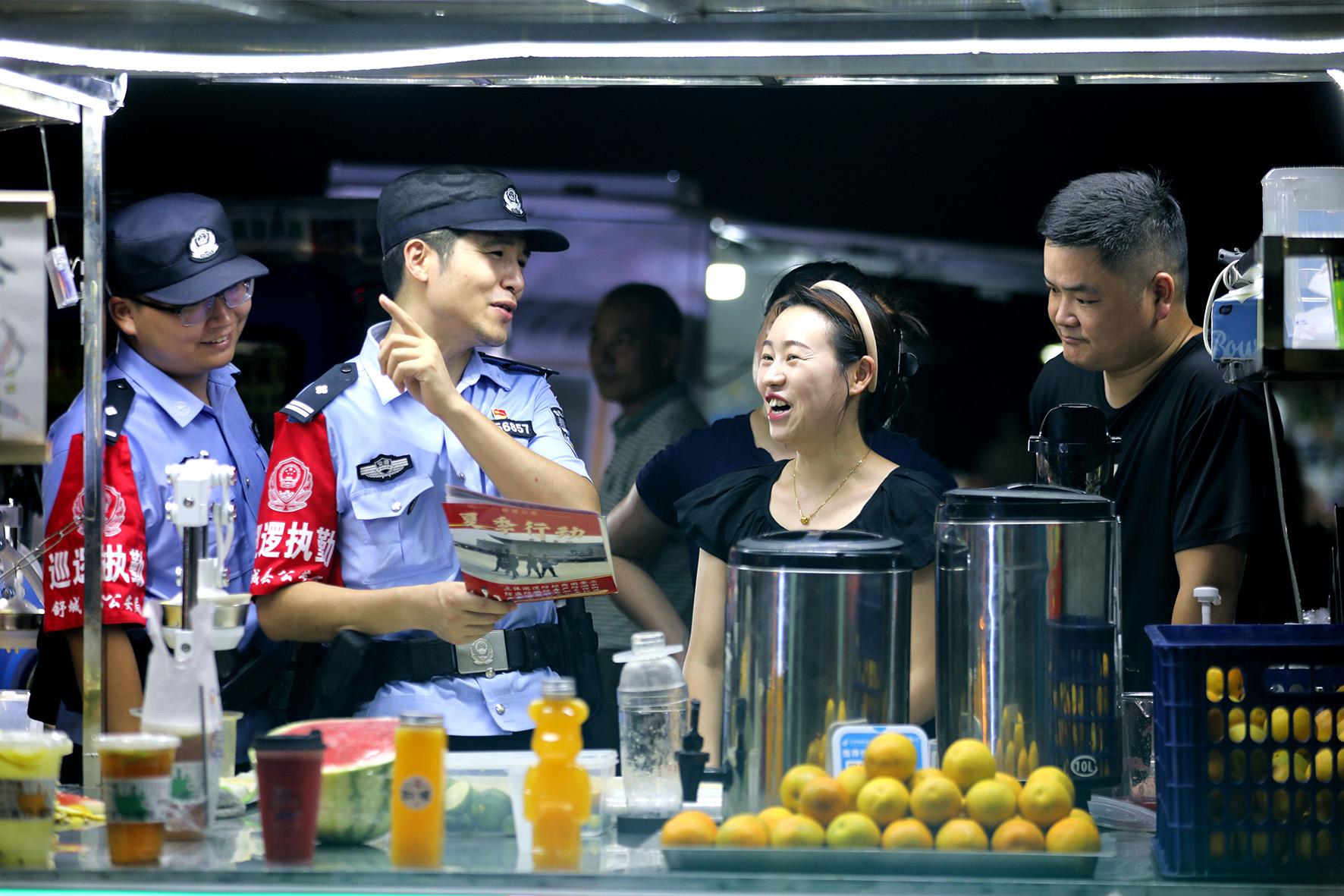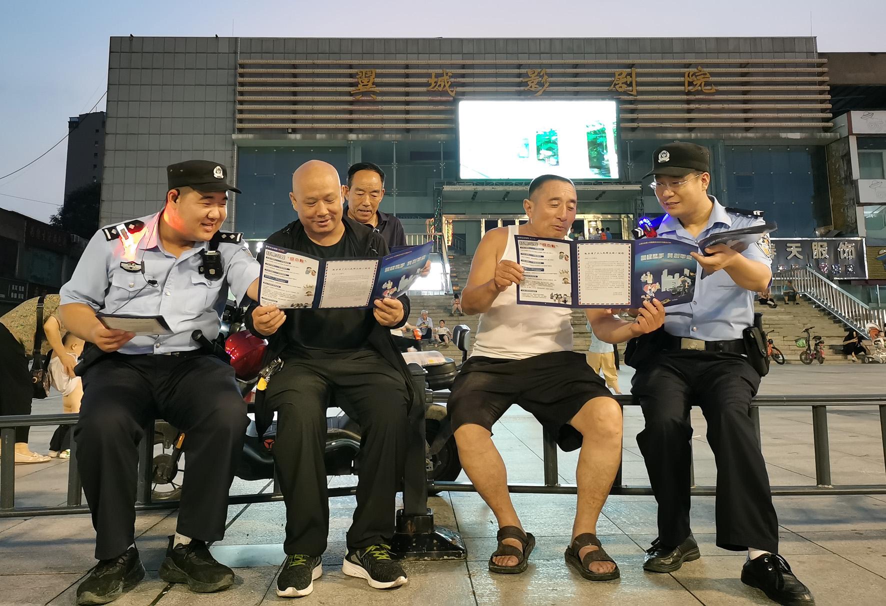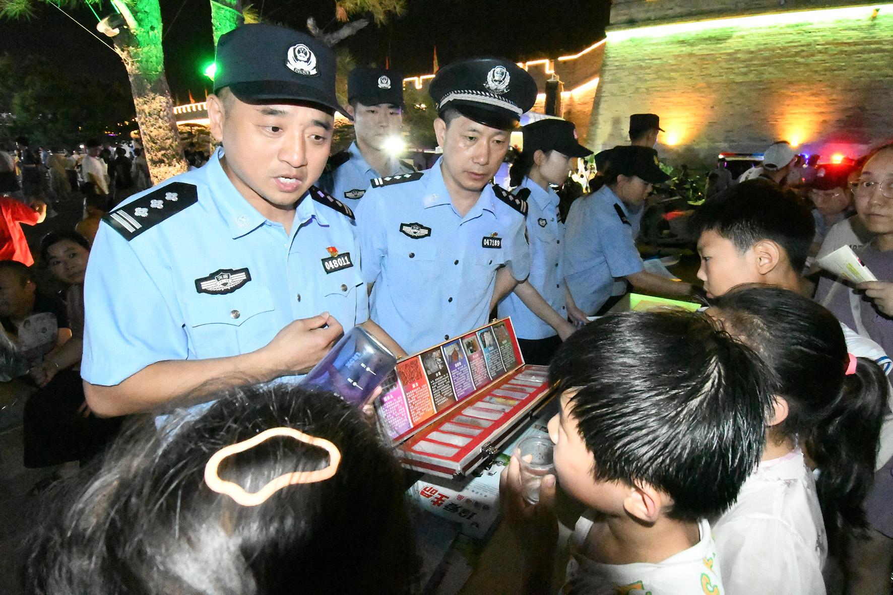 8月10日晚,河南省浚縣公安局結(jié)合夏夜治安巡查宣防集中統(tǒng)一行動(dòng),加大對轄區(qū)商圈、夜市、廣場等人員密集場所的檢查巡邏守護(hù)力度,向群眾宣傳反詐、禁毒、拒賭、防火防盜等安全防范知識(shí)。