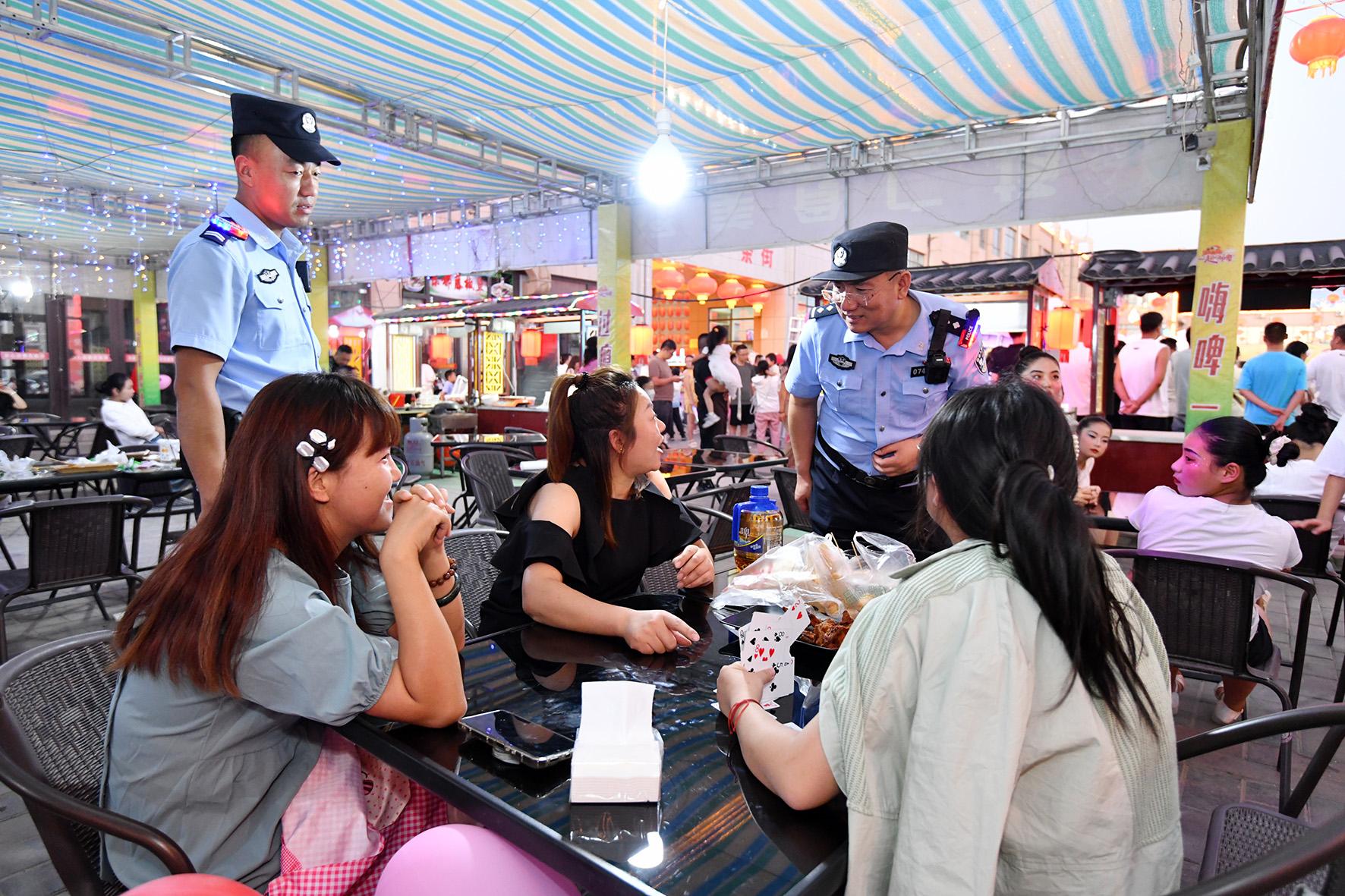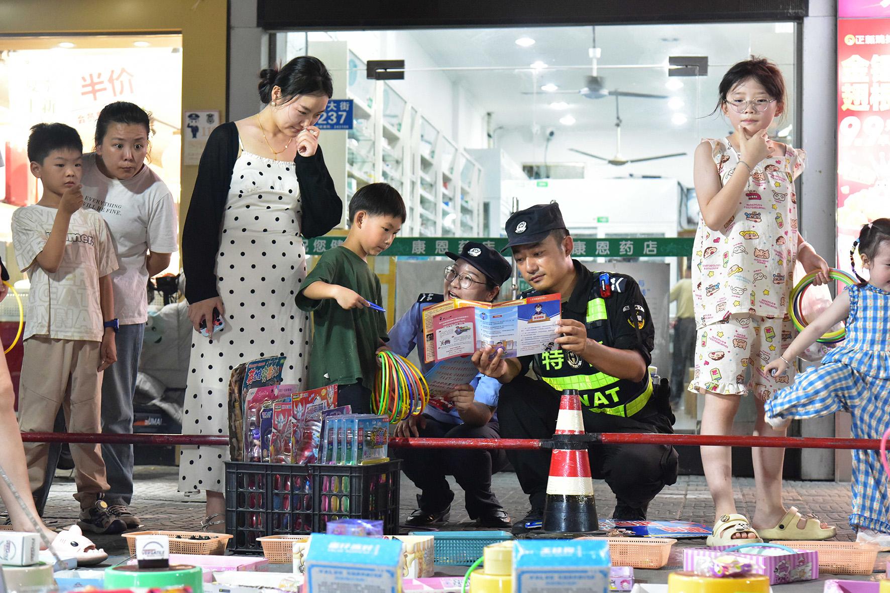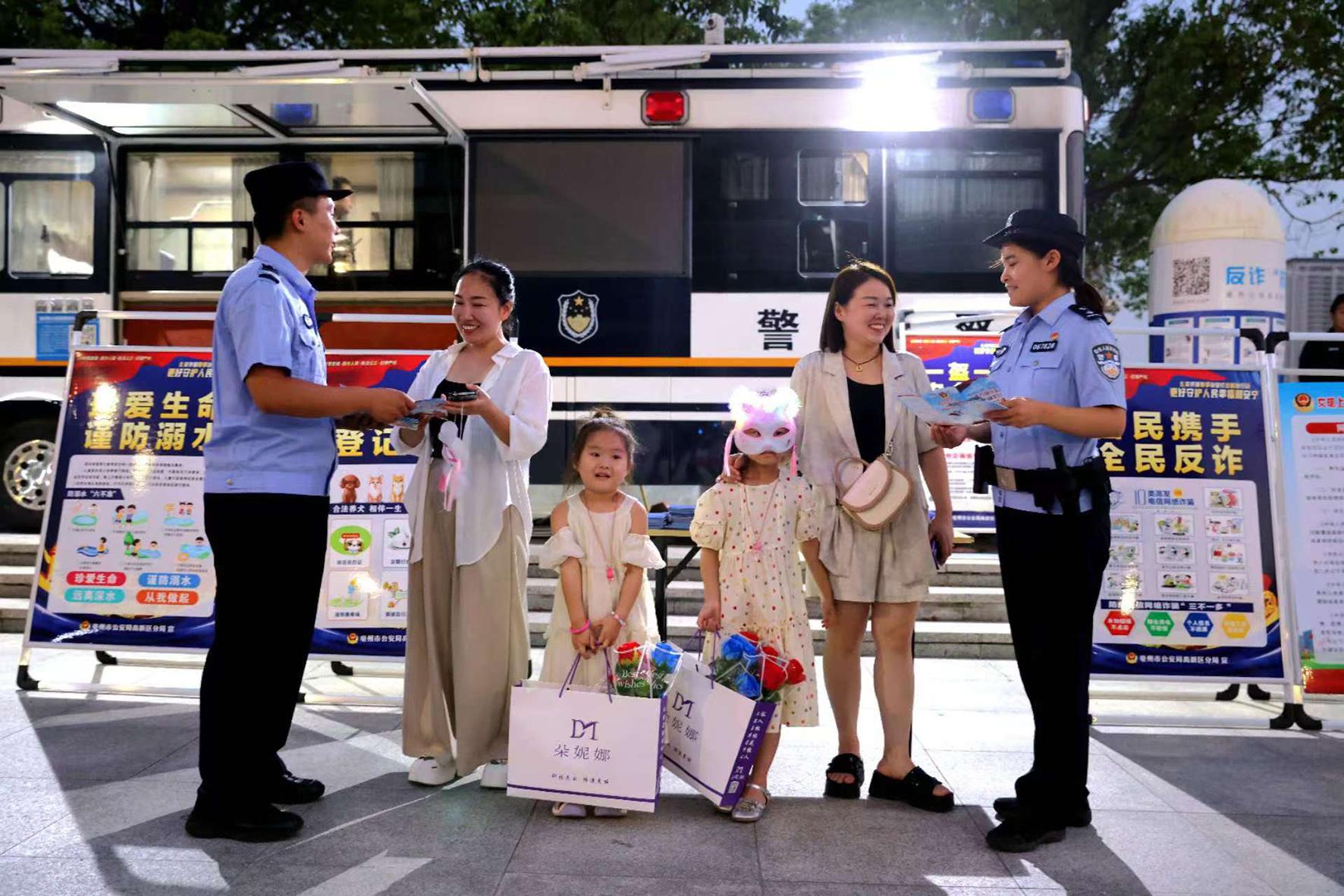 8月10日晚,河南省浚縣公安局結(jié)合夏夜治安巡查宣防集中統(tǒng)一行動(dòng),加大對轄區(qū)商圈、夜市、廣場等人員密集場所的檢查巡邏守護(hù)力度,向群眾宣傳反詐、禁毒、拒賭、防火防盜等安全防范知識(shí)。