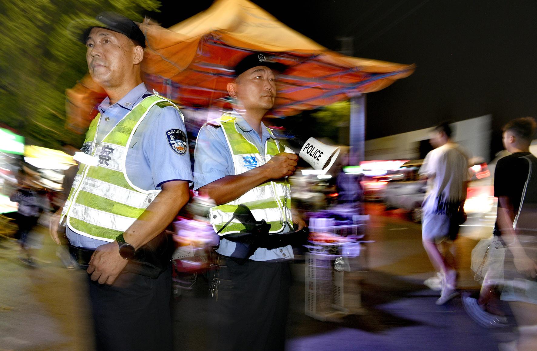 8月10日,河南省鄭州市公安局金水分局巡特警隊(duì)員在全市公安機(jī)關(guān)夏夜治安巡查宣防統(tǒng)一行動(dòng)中,全力以赴恪盡職守,“當(dāng)好守夜人”。
