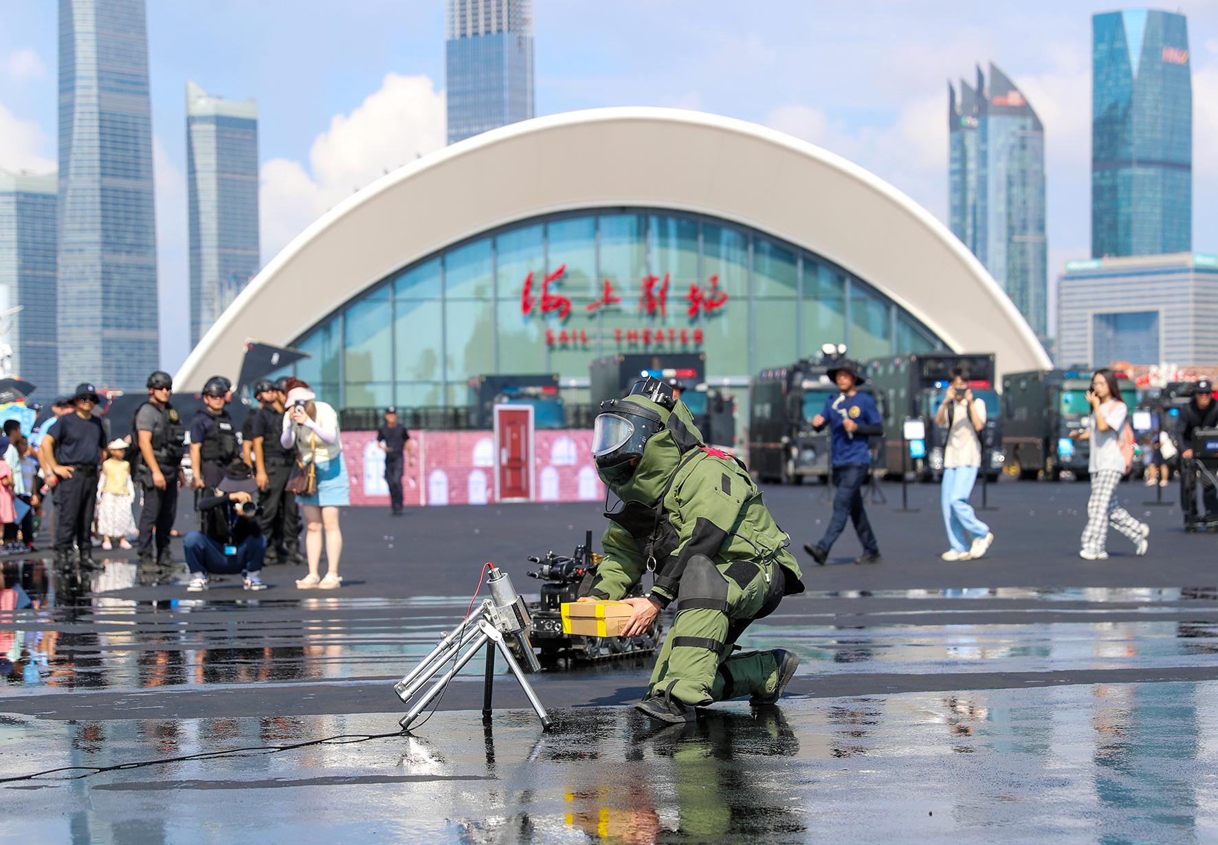 8月18日,山東省青島市公安局特警警營(yíng)開放日活動(dòng)在青島奧林匹克帆船中心舉行,相關(guān)警種設(shè)置展臺(tái)與市民互動(dòng),并進(jìn)行警務(wù)技能演示和警務(wù)裝備展示。