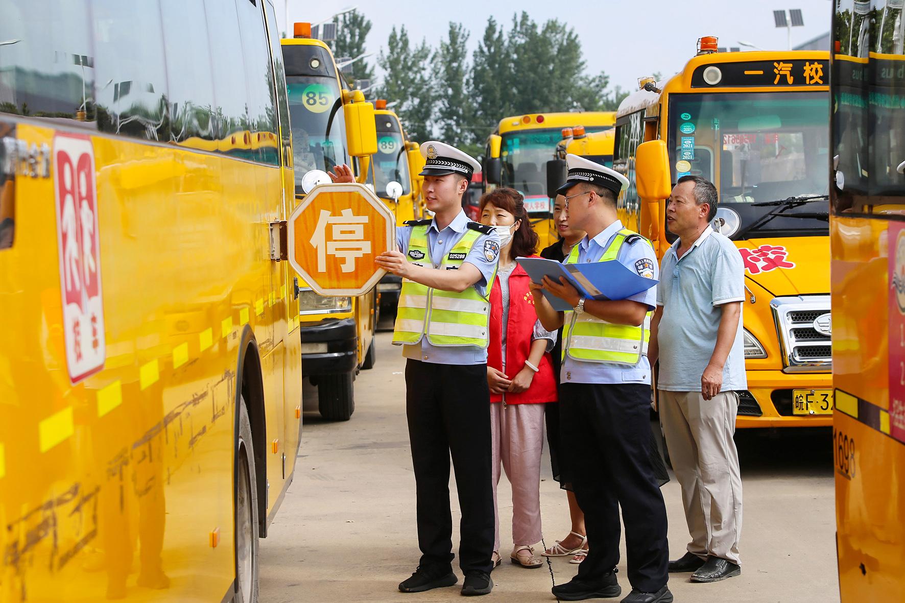 開學(xué)臨近,淮北市公安局交警支隊(duì)四大隊(duì)組織開展校車安全專項(xiàng)大檢查,消除校車安全隱患,保障學(xué)生乘車安全。