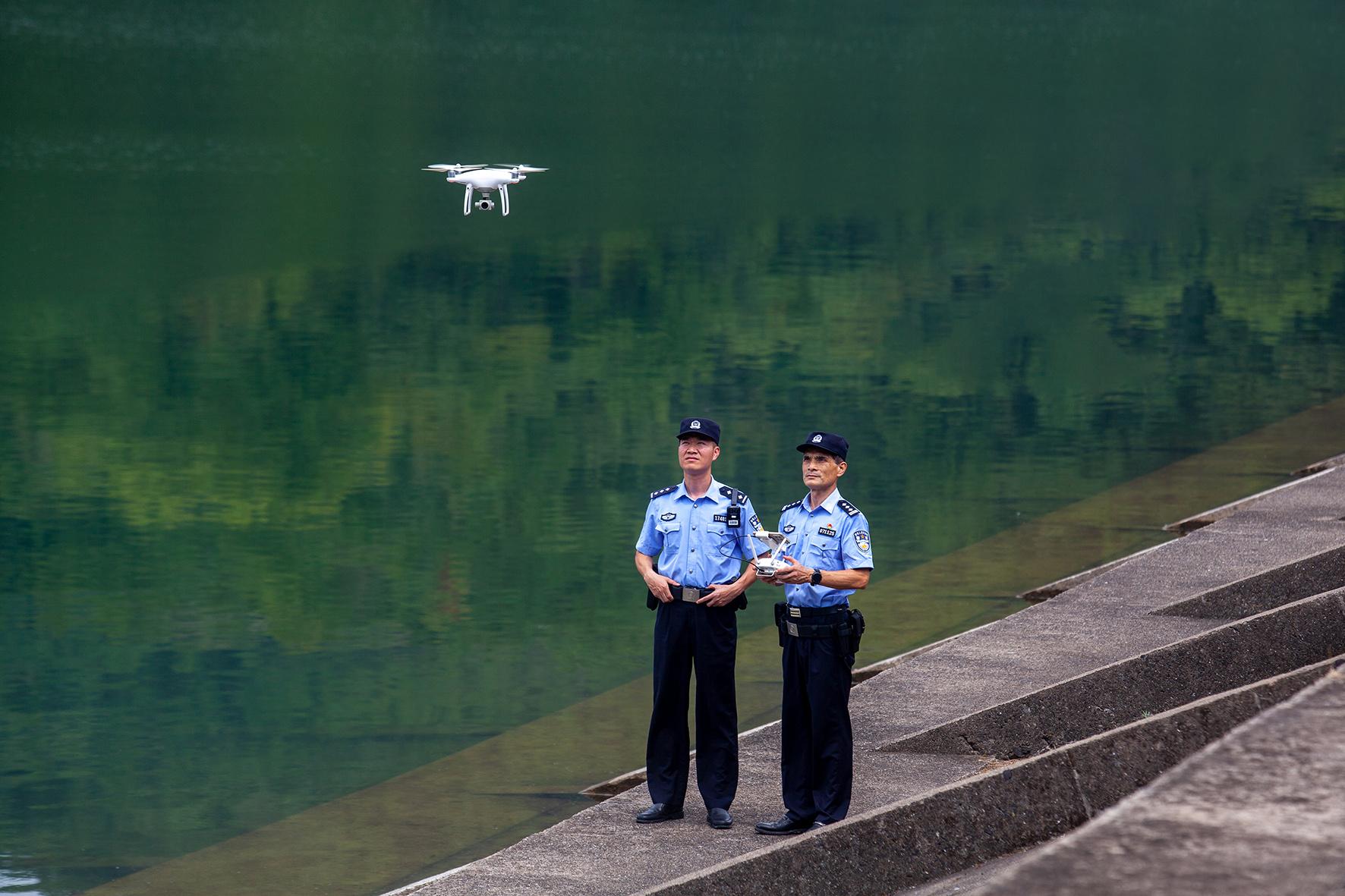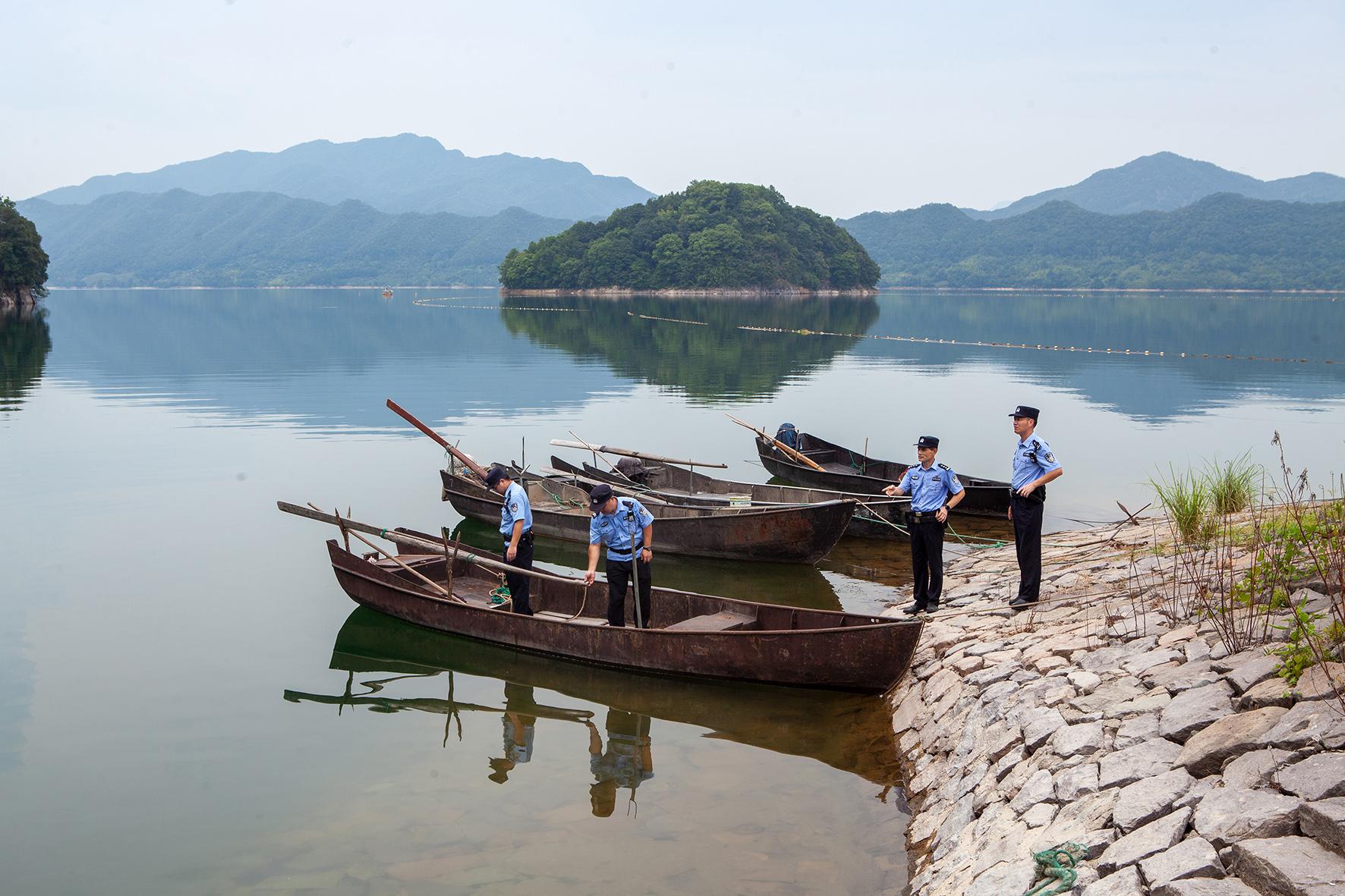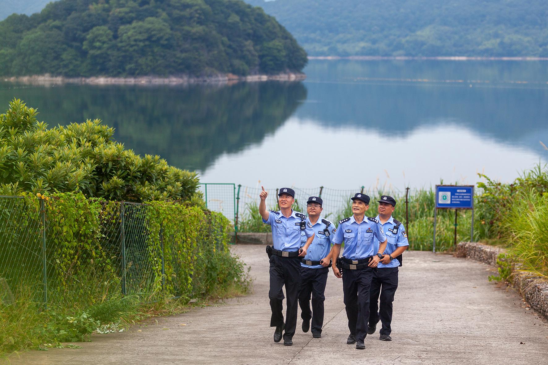8月27日,浙江省臺(tái)州市公安局黃巖分局北洋派出所民警在長潭湖水庫巡查。黃巖警方實(shí)行“生態(tài)警務(wù)”,加強(qiáng)對(duì)庫區(qū)的巡防管控,整治各種危害水資源安全的行為,提升群眾保護(hù)飲用水水源地的意識(shí),切實(shí)守護(hù)好綠水青山。