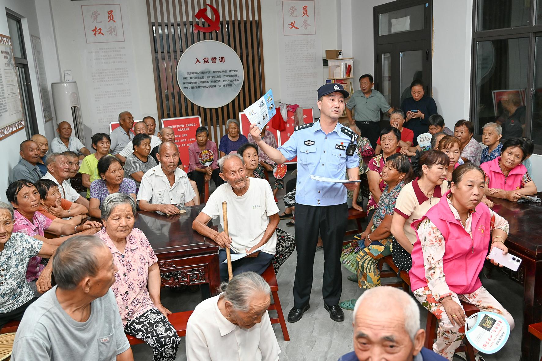 9月19日晚,安徽省和縣公安局石楊派出所民警在石楊鎮(zhèn)大武村老年學(xué)校,向老年學(xué)員們開展預(yù)防網(wǎng)絡(luò)詐騙法治宣講。