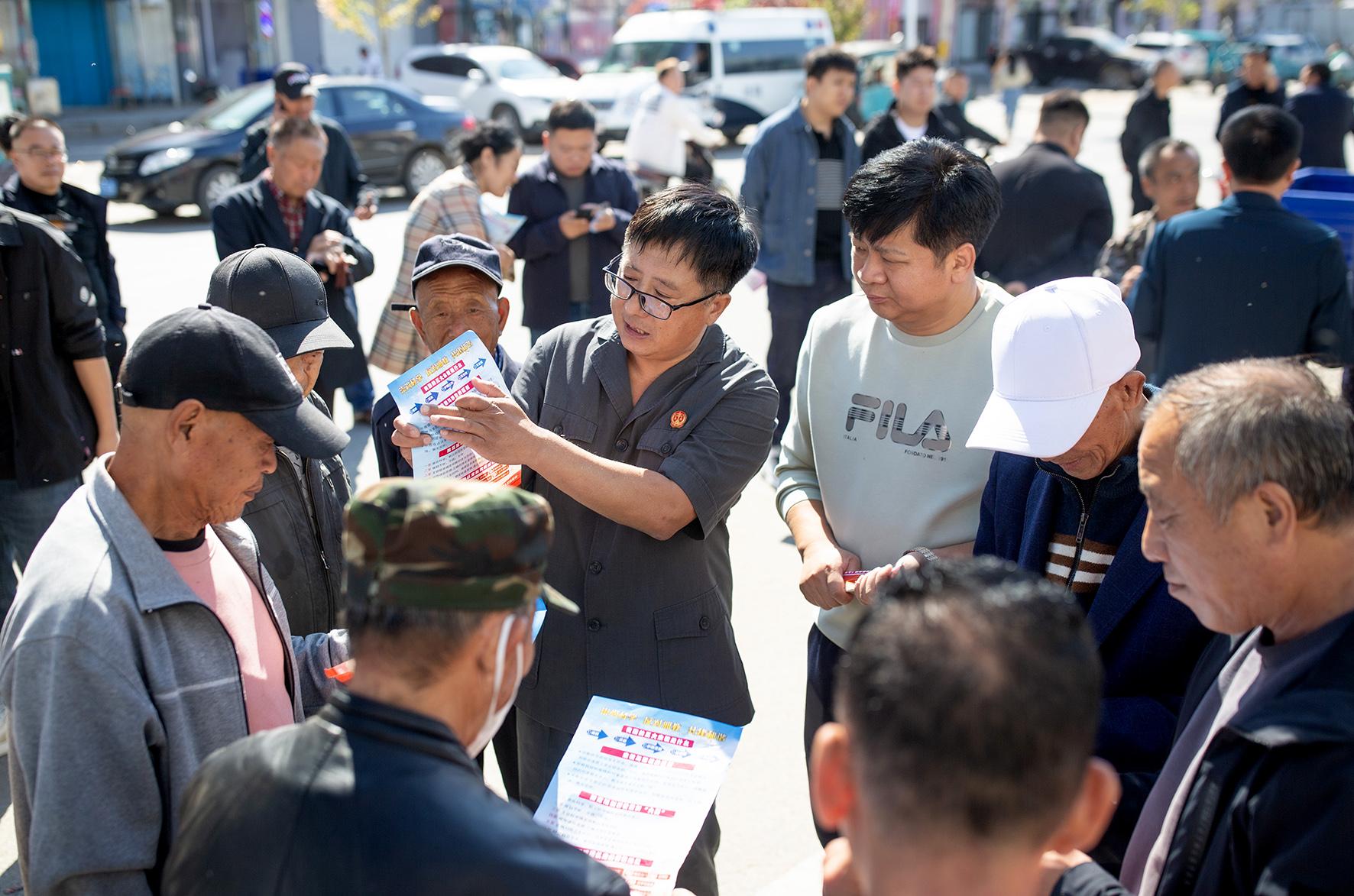 9月23日,吉林省梨樹(shù)縣人民法院小城子法庭將司法服務(wù)與鄉(xiāng)村生活緊密結(jié)合,利用當(dāng)?shù)責(zé)狒[的鄉(xiāng)村大集,舉辦“崇尚科學(xué) 反對(duì)邪教”千人簽名宣傳活動(dòng)。