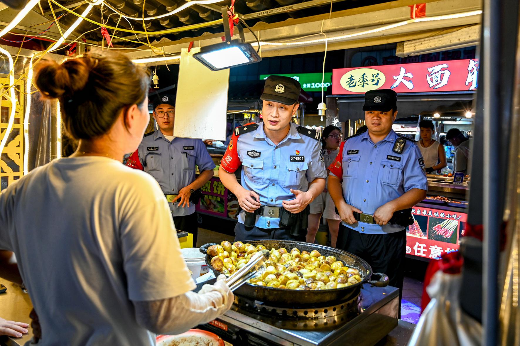 9月23日晚,安徽省馬鞍山市和縣公安局民警正在開展夜間巡邏,向市民了解治安狀況,聽取群眾對公安工作的意見和建議。今年以來,該縣公安機(jī)關(guān)全面落實“見警力、見警車、見警燈”工作要求,對重點區(qū)域、重點時段開展巡邏管控,全力提升群眾的安全感。