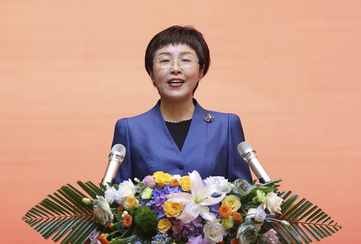 圖為中共佳木斯市委書記叢麗致辭。