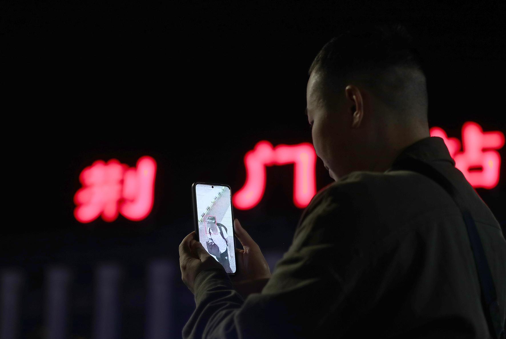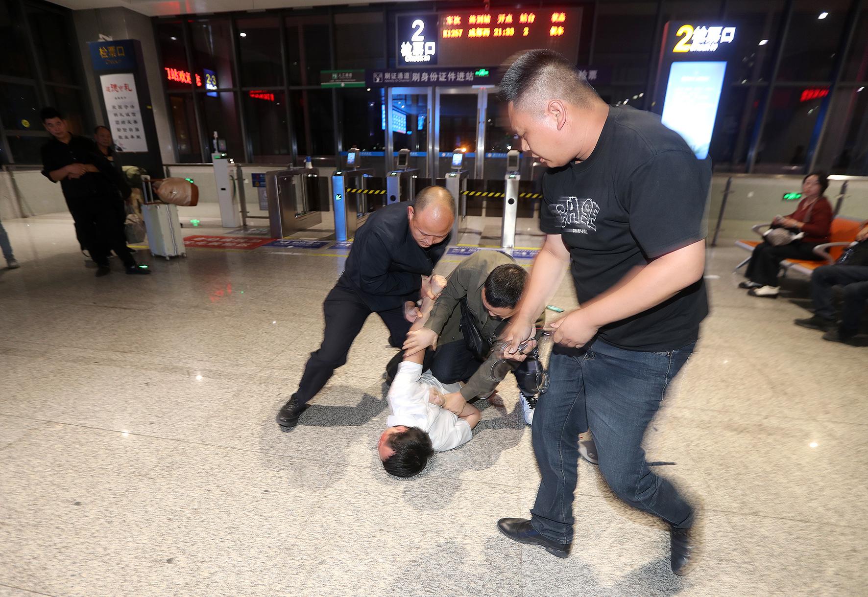 圖一:盜竊嫌疑人在荊門市火車站現(xiàn)身,便衣民警經(jīng)核對相貌后,準(zhǔn)備實施抓捕。