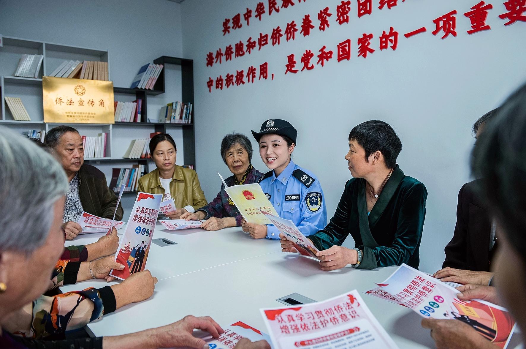 10月14日,安徽省含山縣司法局聯(lián)合環(huán)峰鎮(zhèn)大慶社區(qū)開展“學僑法 護僑益”活動,在環(huán)峰鎮(zhèn)大慶社區(qū)僑法宣傳角,普法工作者通過發(fā)放宣傳單、典型案例、僑法小課堂等形式,加大對歸僑僑眷權益保護法的宣傳力度,增強僑眷、僑屬對僑法知識的了解,提高尊僑、愛僑、依法護僑的意識,切實做好依法維權、依法護僑工作。