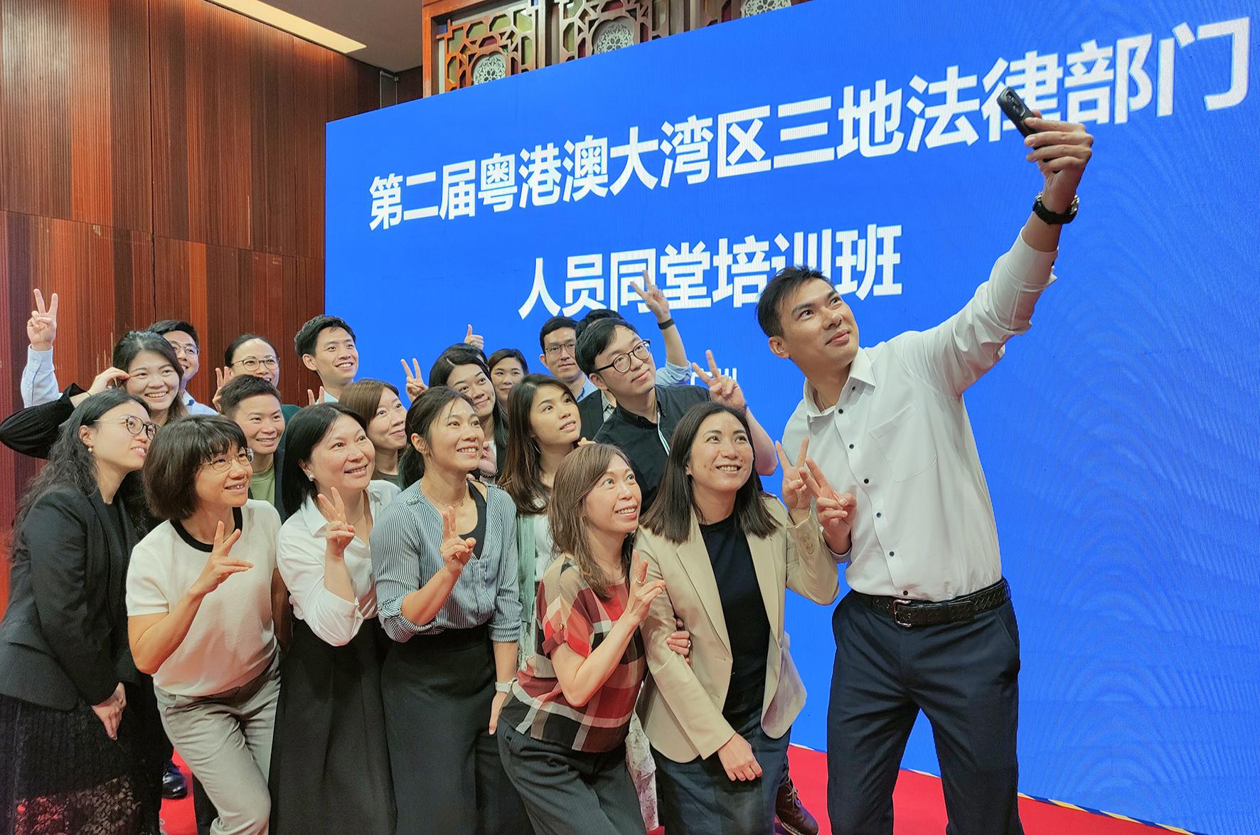 圖為培訓(xùn)課后,粵港澳部分學(xué)員自拍合影留念。