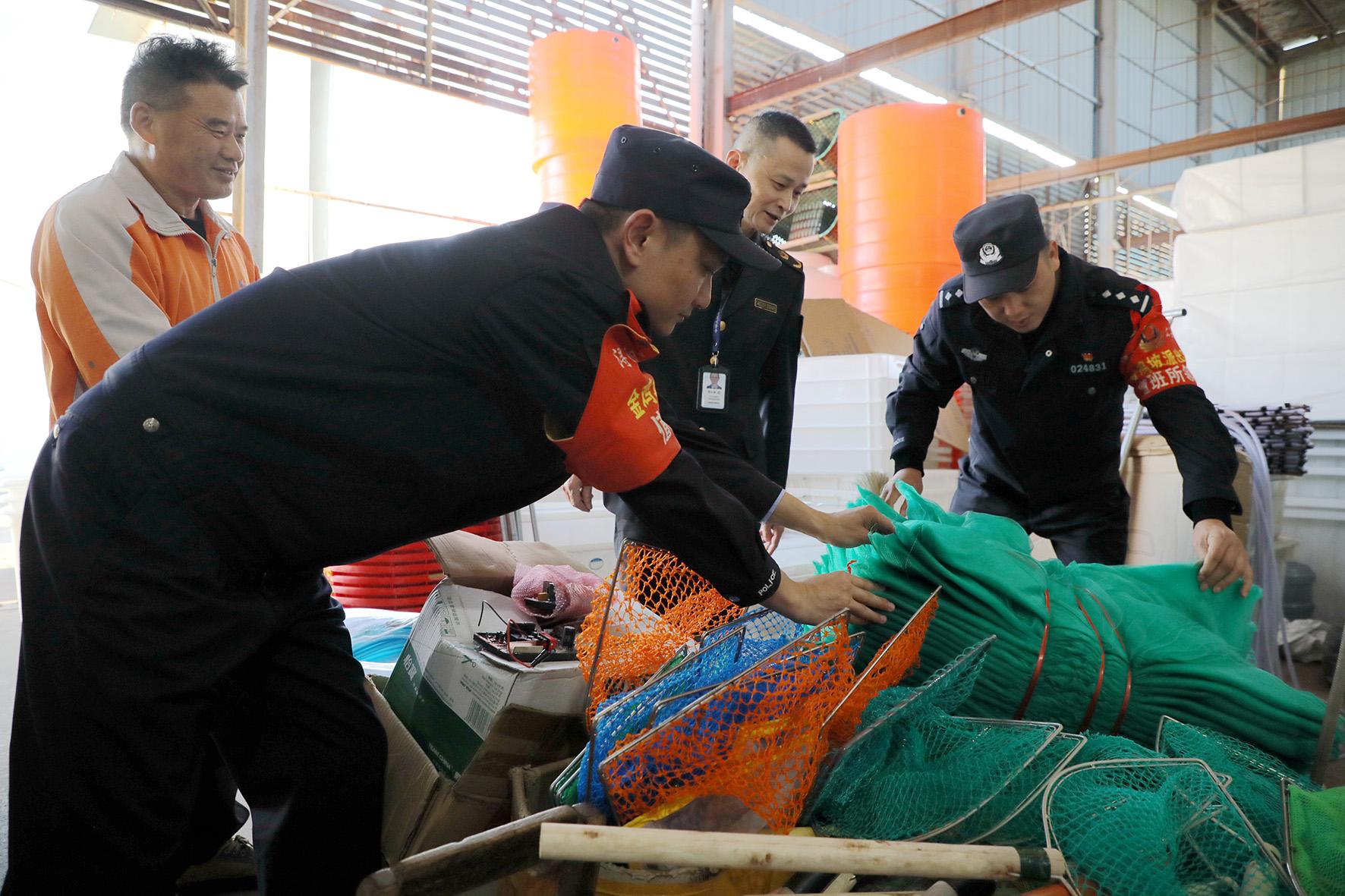 為進(jìn)一步增強(qiáng)打擊非法捕撈專項(xiàng)整治行動(dòng)成效,11月11日,江西省九江市公安局潯陽分局金雞坡派出所在轄區(qū)漁具批發(fā)市場開展銷售禁用漁網(wǎng)具專項(xiàng)檢查整治行動(dòng)。