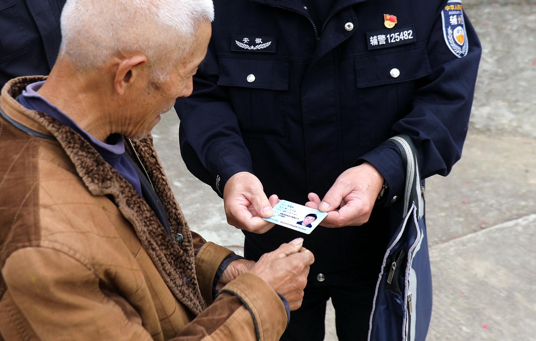 圖二、民警將辦理好的身份證交給老人。
