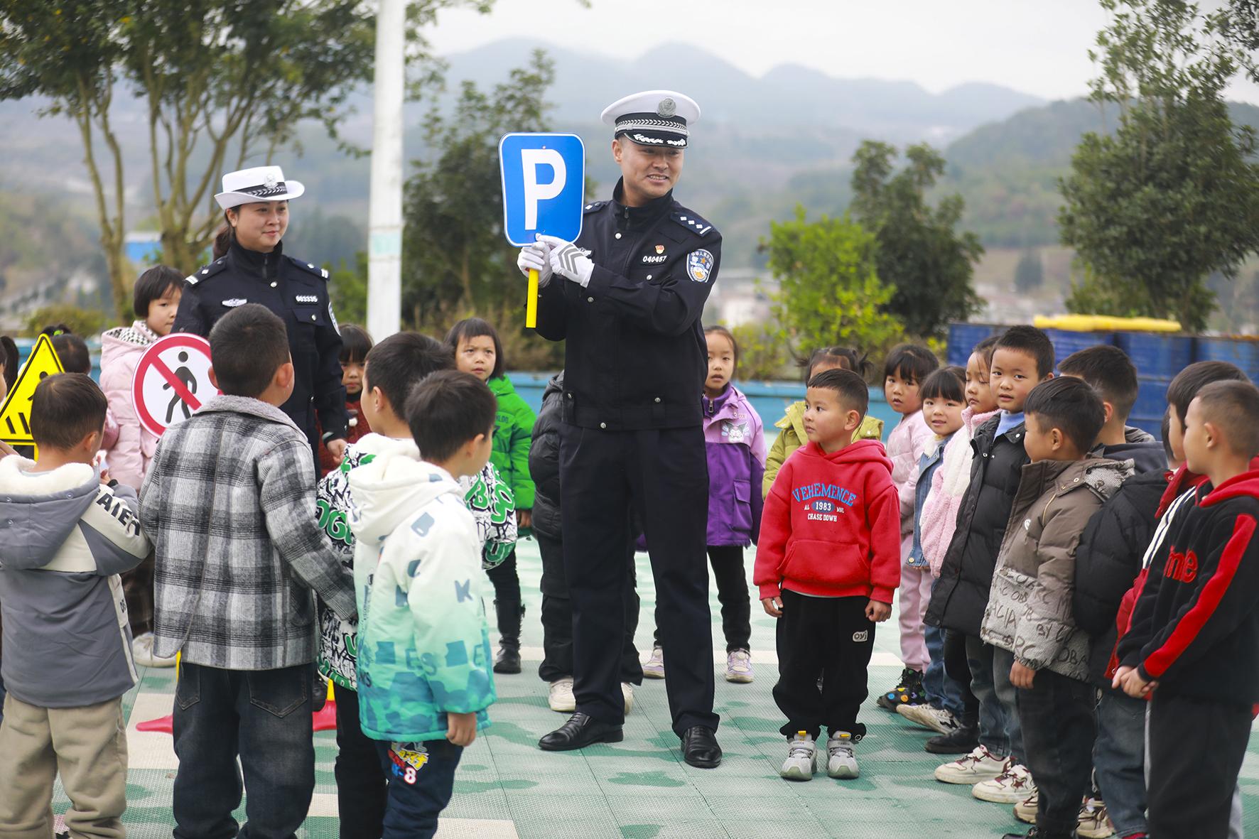 11月19日,貴州省畢節(jié)市公安局交通管理局高速三大隊民警走進轄區(qū)內(nèi)高速沿線的黔西市五里布依族苗族鄉(xiāng)中心幼兒園,開展“交通安全進校園”宣傳教育活動。