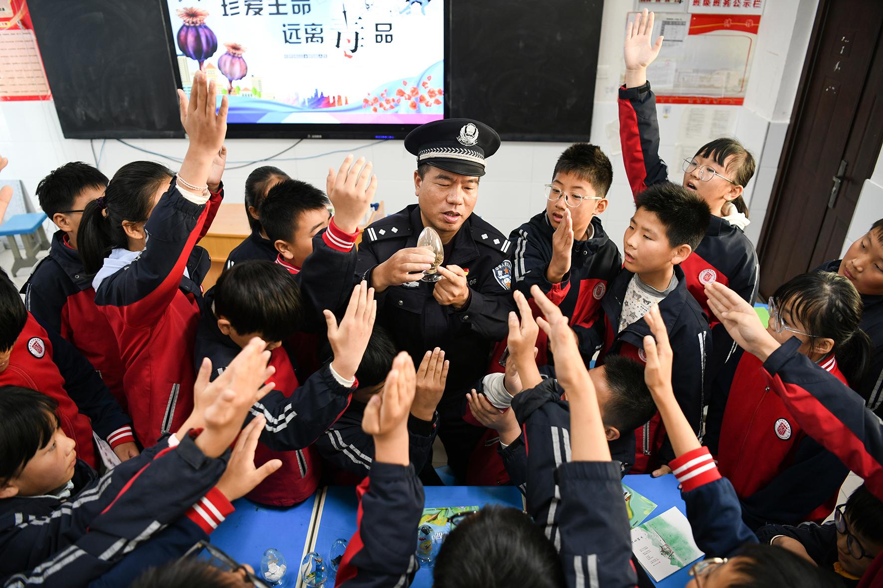11月21日,安徽省含山縣公安局花山派出所組織民警開展禁毒宣傳進(jìn)校園活動,為青少年健康成長保駕護(hù)航。
