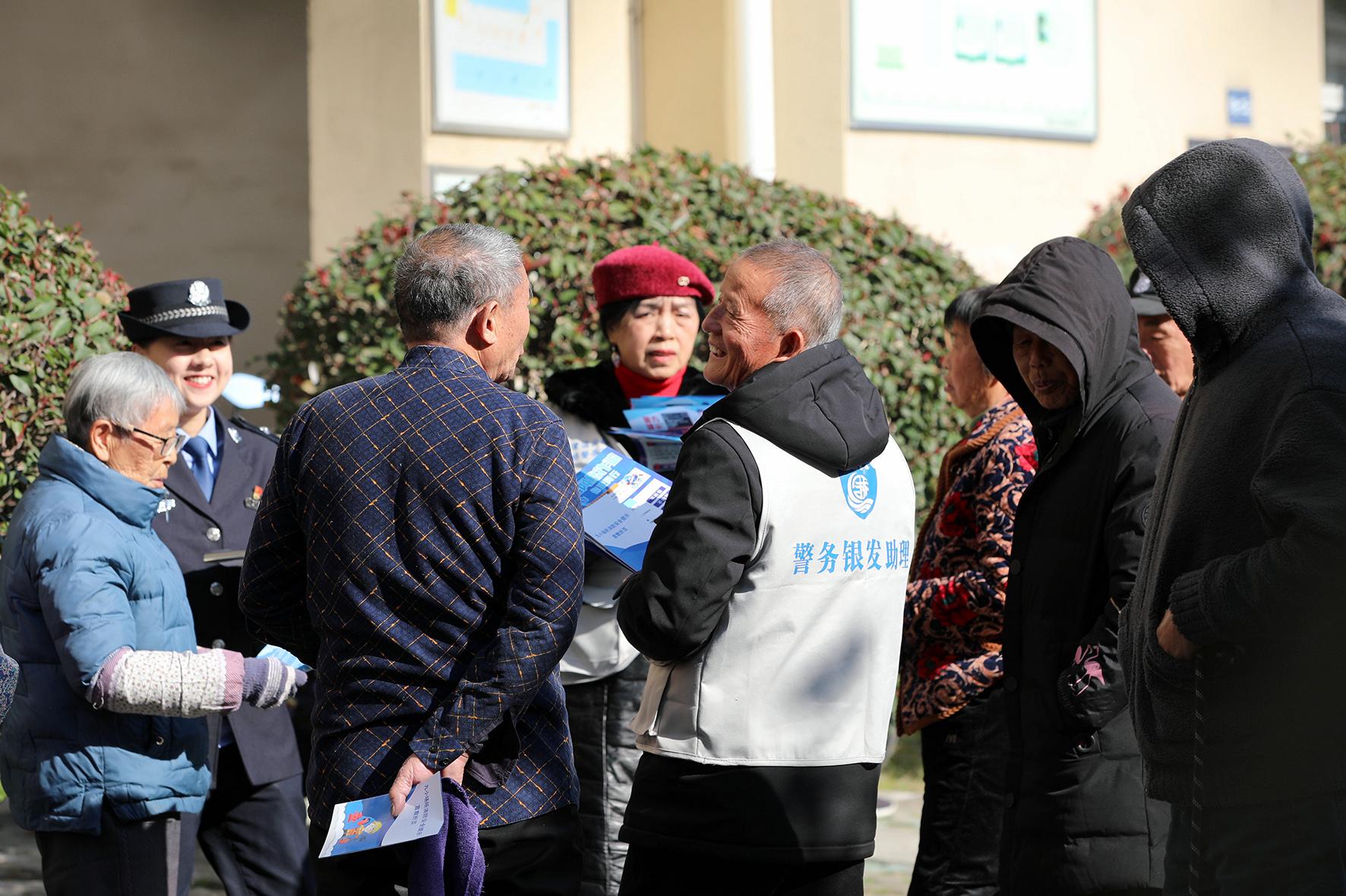 圖為“警務(wù)銀發(fā)助理”配合民警進(jìn)行反詐宣傳。